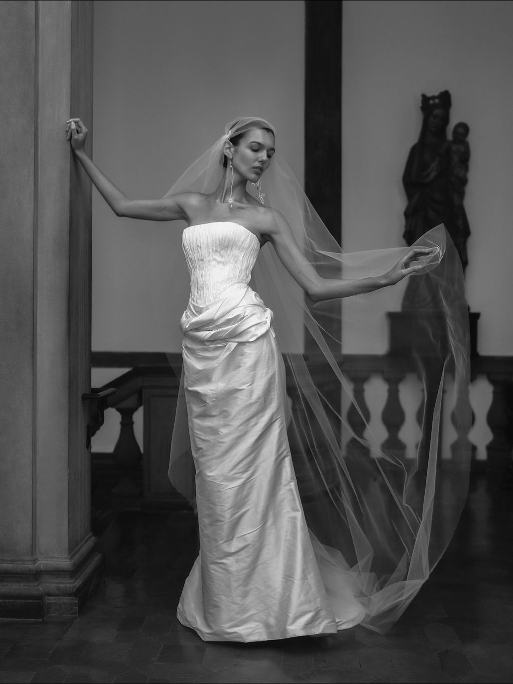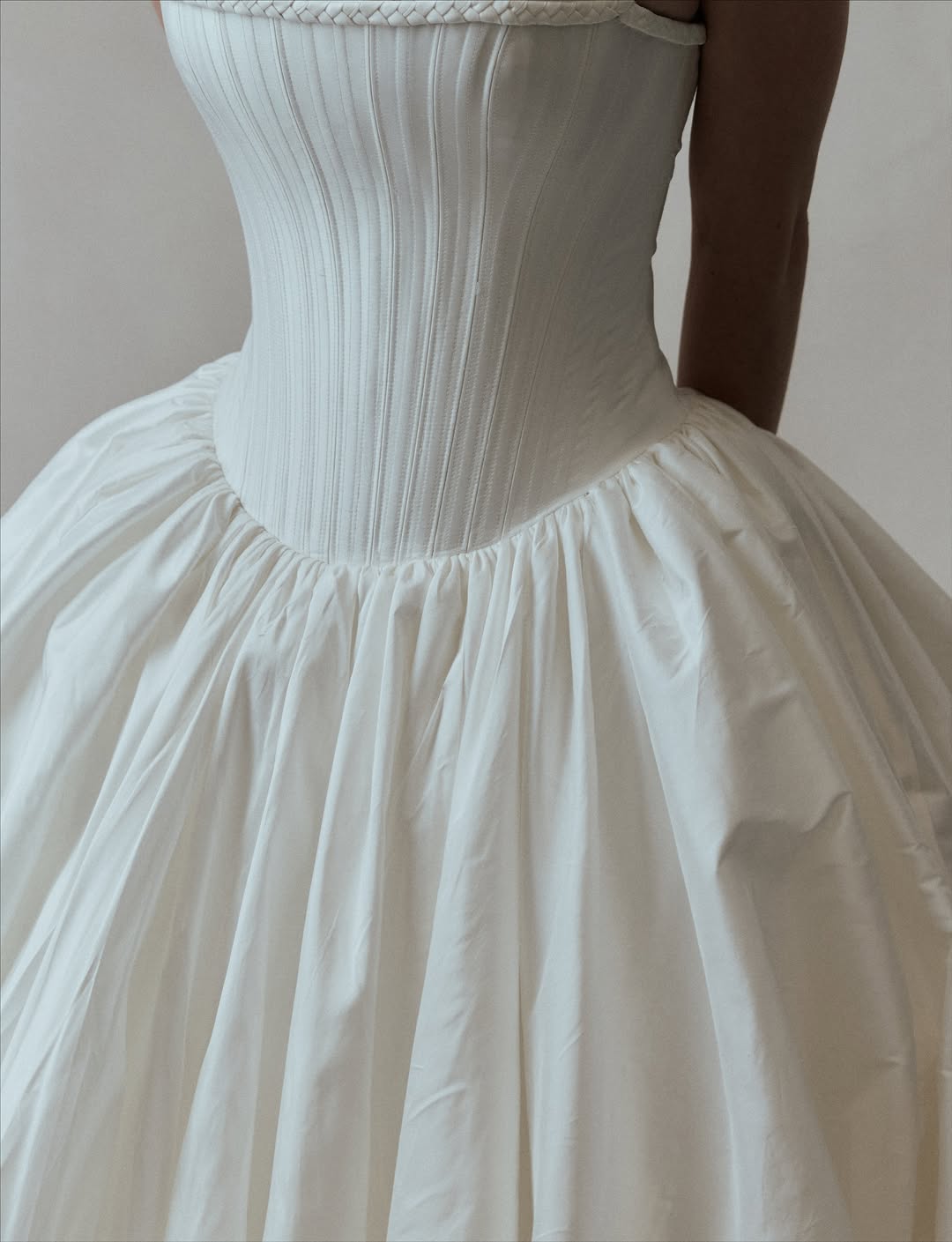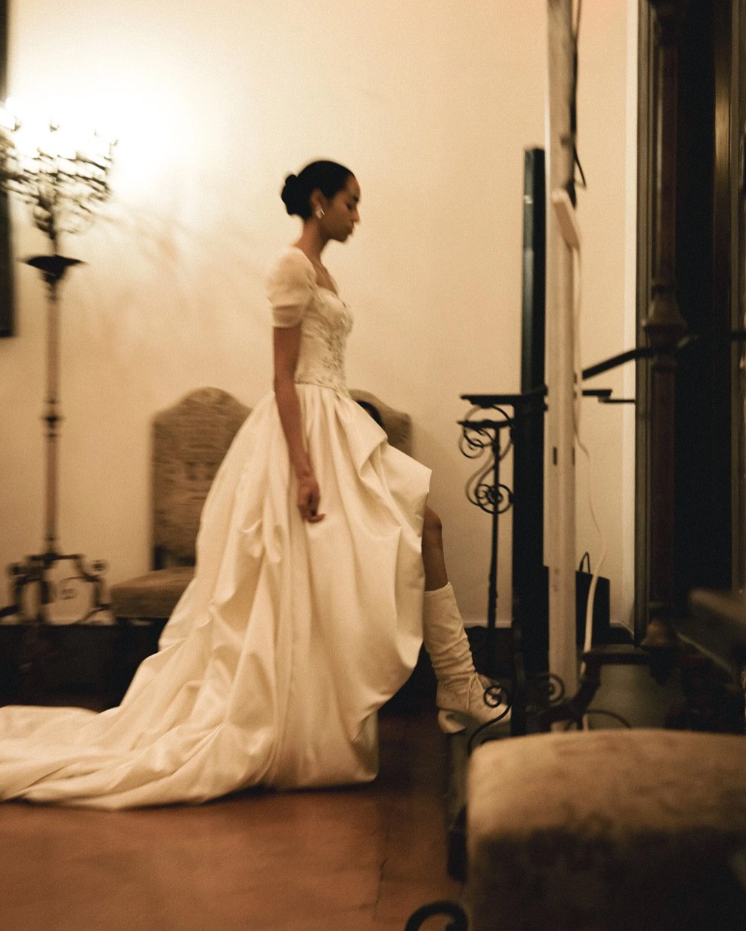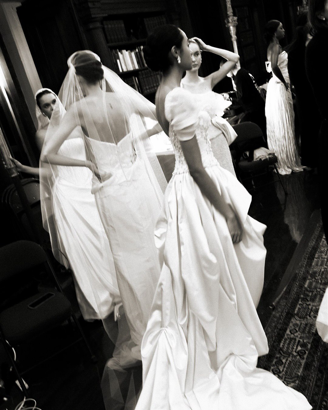 Наряды из весенней коллекции Floure studio были представлены в рамках Недели свадебной моды в Нью-Йорке. Вдохновением для невест, которые готовятся к торжеству в 2026 году, может стать жемчужина показа — модель Davine, сшитая из плиссированного шелкового дупиона и украшенная скульптурным корсетом на тонких бретелях. Всего в капсулу вошло 16 свадебных платьев.