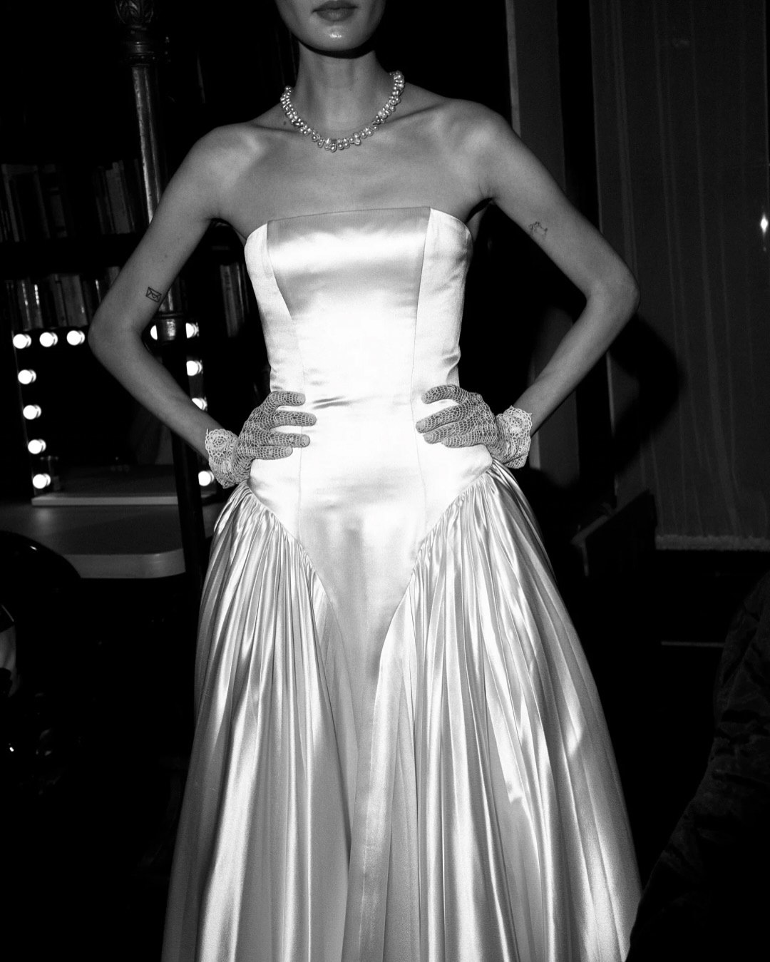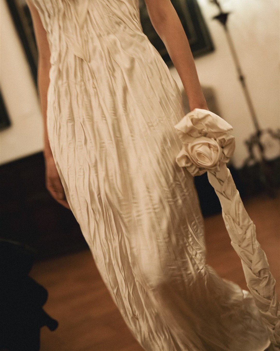 Для создания капсулы использовались исключительно премиальные материалы: тончайший шелк, ткани с ручной плиссировкой и изысканное кружево. Современные силуэты в сочетании с традиционными кутюрными техниками и ручной отделкой сделали каждое платье уникальным.