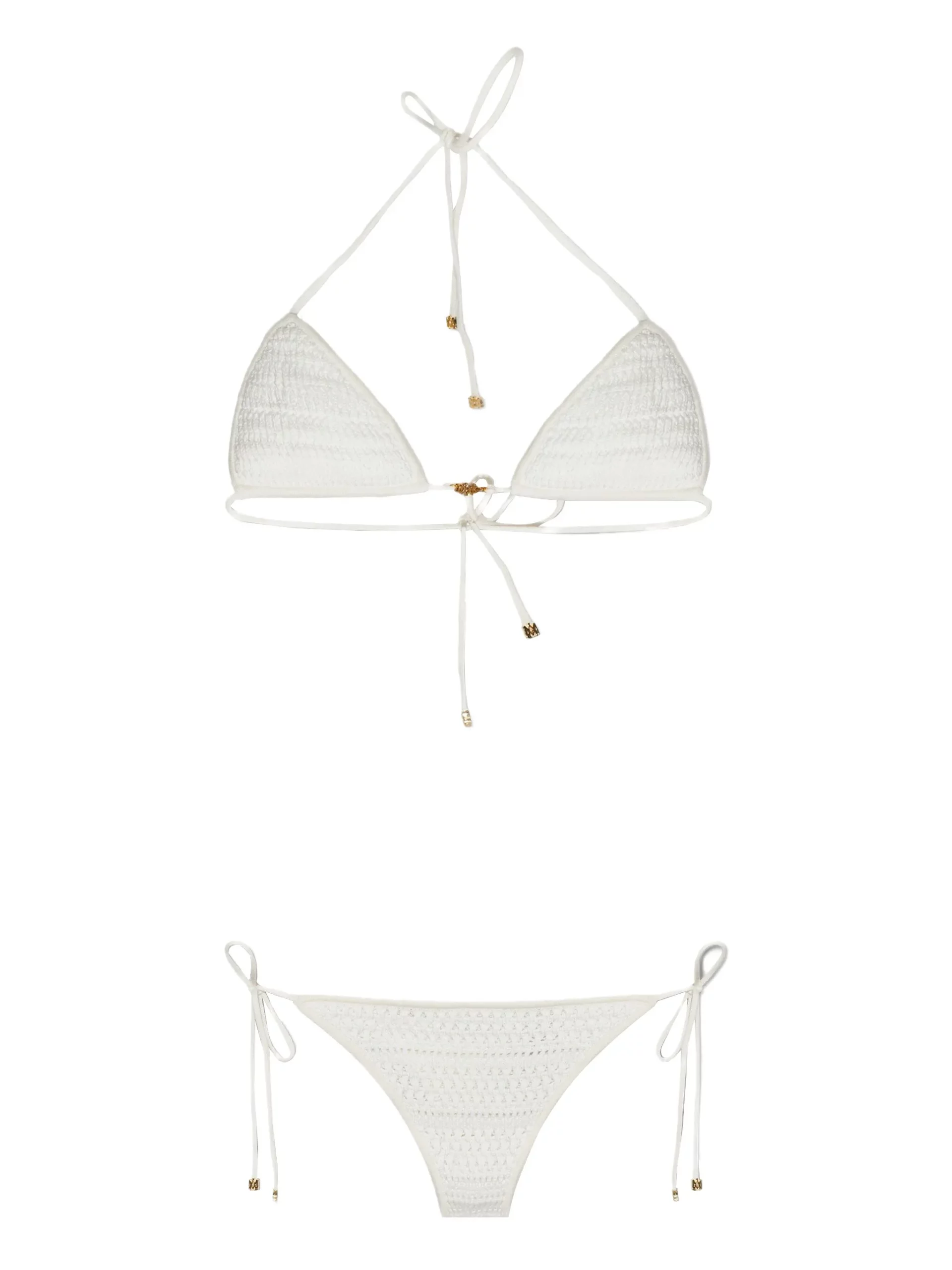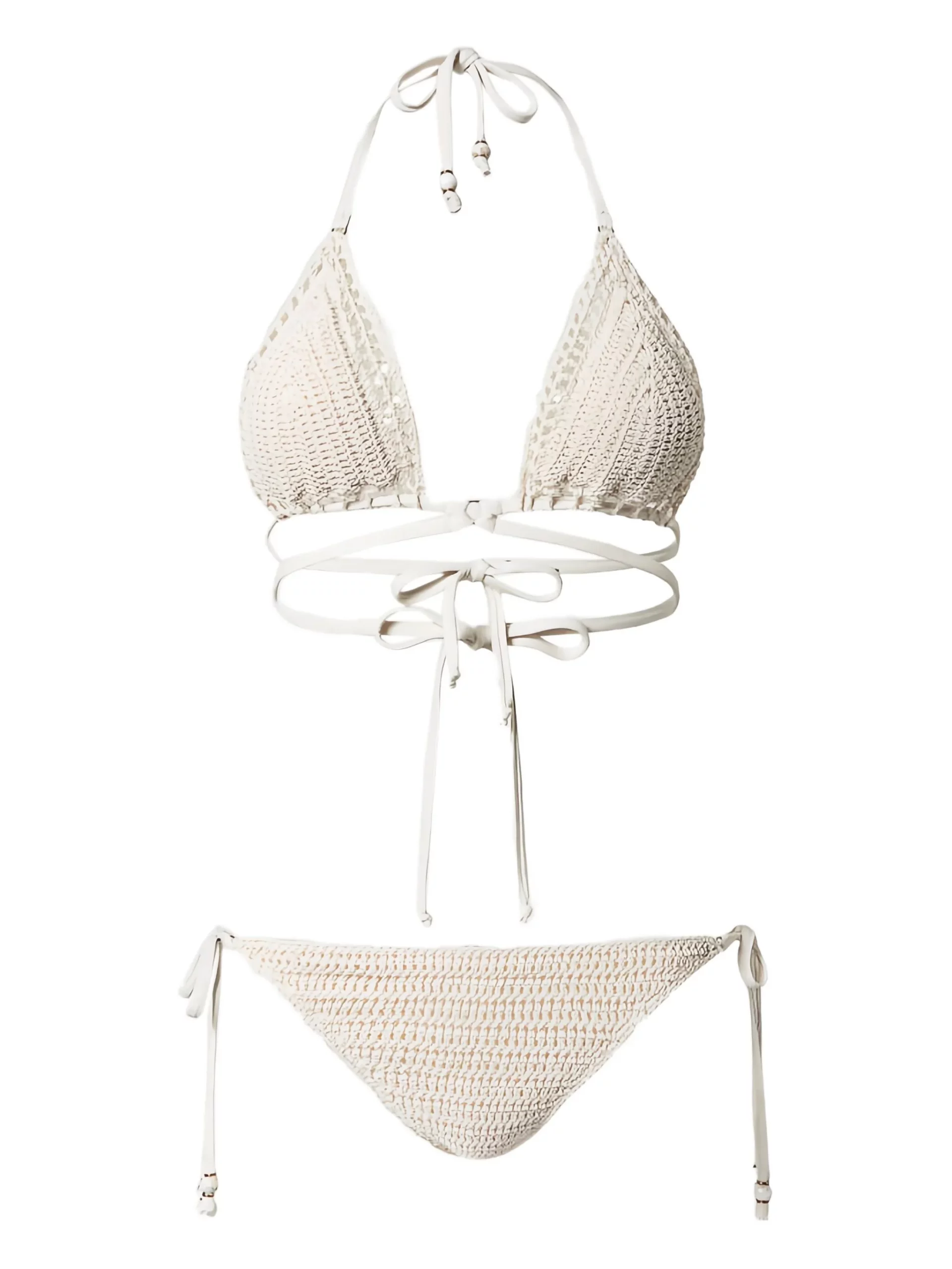 Вязаные крючком бикини и слитные модели в технике «кроше» — это настоящая поэзия в деталях. Ажурные узоры, напоминающие кружево на свадебном платье, тонкие бретели и изящные завязки создают образ невероятной нежности и богемного шика. Такой купальник — идеальный выбор для романтической фотосессии на пляже.