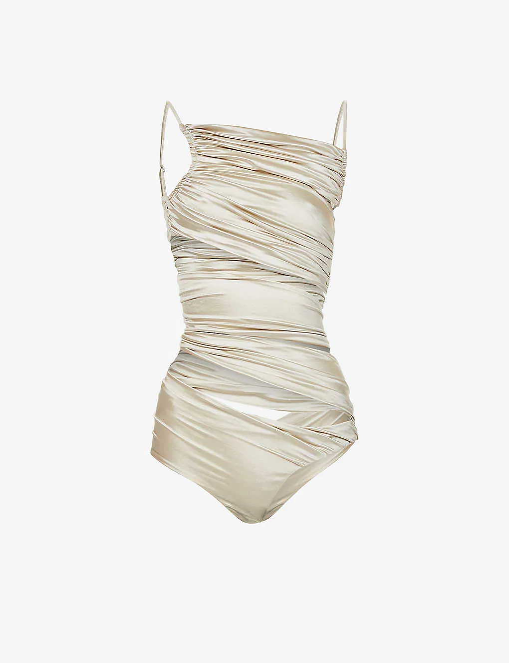 Если вы хотите чувствовать себя на пляже как на красной дорожке, ваш выбор — купальник с драпировкой. Этот тренд пришел из мира высокой моды и мастерски сочетает в себе роскошь и функциональность. Мягкие складки и искусные обмотки ткани эффектно моделируют фигуру, выгодно подчеркивая талию и линию груди, одновременно скрывая возможные несовершенства. Слитные модели с драпировкой на одном плече или асимметричные купальники выглядят по-настоящему нарядно, превращая простой заплыв в море в элегантный выход. Раздельные варианты с завышенными трусиками и драпировкой на лифе добавляют образу ретро-флер и особую грацию.