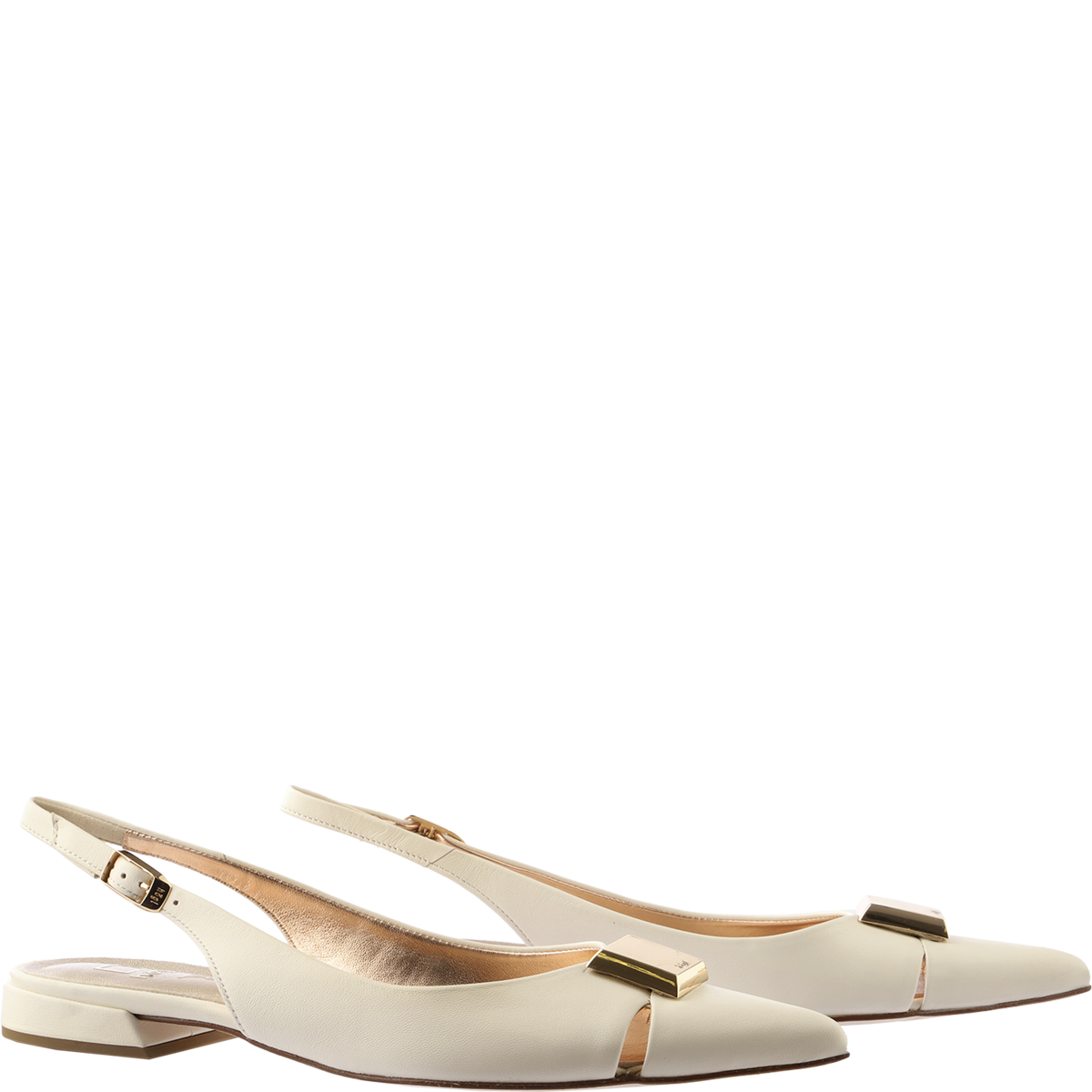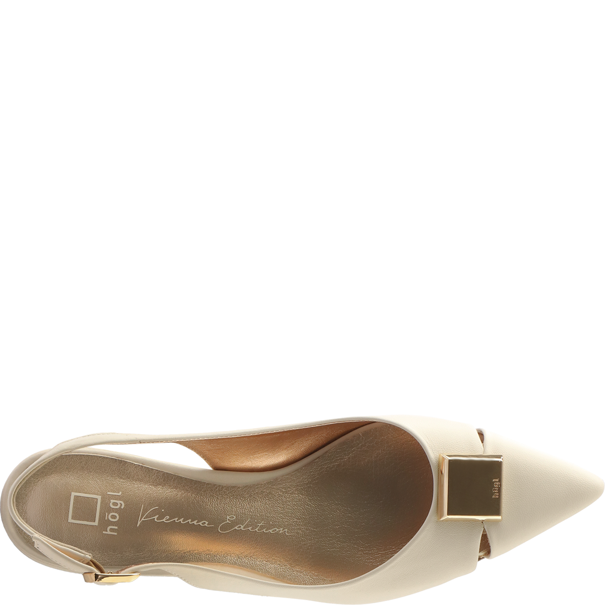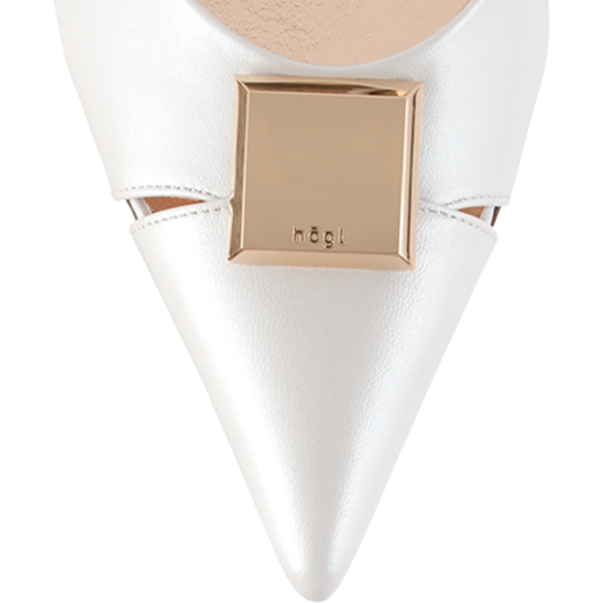 Выбор смелых невест — балетки с ремешком на пятке SIMONE из свадебной капсулы Högl. Они выглядят очень элегантно за счет светлой матовой кожи, утонченных вырезов и характерного золотистого элемента на мыске.