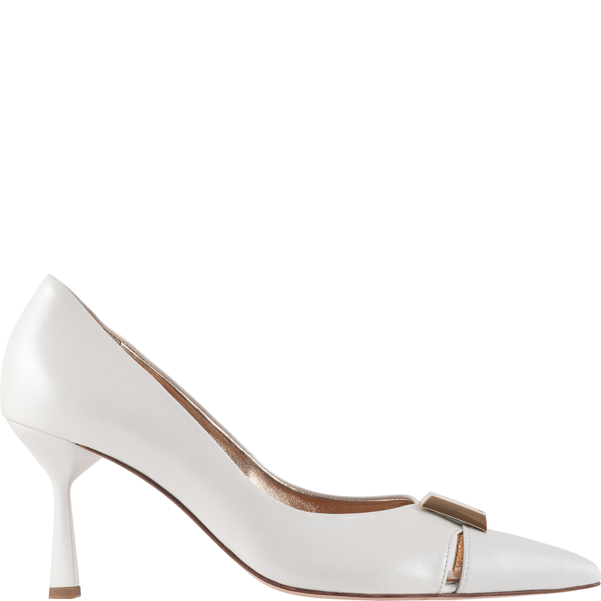 Лодочки ROMY — пример именно такого подхода: матовая кожа в светлом оттенке, изогнутый каблук и слегка заостренный мыс выглядят утонченно и свежо. А изящные вырезы и золотистый декоративный элемент добавляют благородной выразительности.