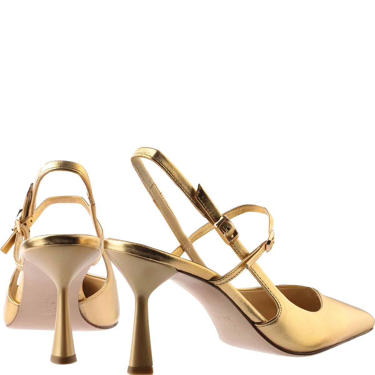 Прекрасной иллюстрацией тенденции становятся лодочки DORY — с золотистым мерцанием, точеным силуэтом и перекрещивающимися ремешками, они создают изящную графику и подчеркивают стопу.
