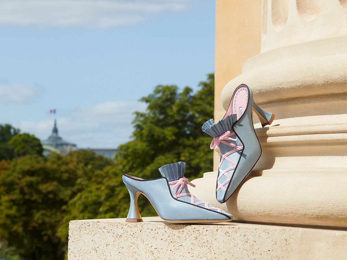 Каждая эксклюзивная модель капсулы отражает неизменную любовь Бланика к искусству, сложному орнаменту и театральной эффектности.
