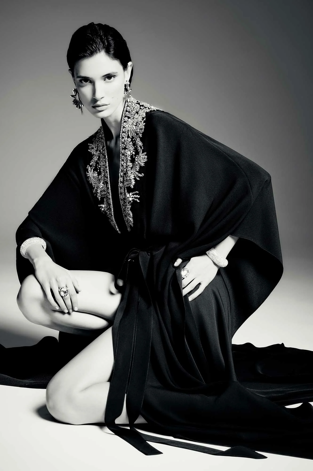 Самая сияющая замена привычному белому. Мгновенно превращает любую вечеринку в оскаровскую, а вас — в суперзвезду. И, по завету Алессандро Микеле из Valentino, аксессуары скромными тоже быть не должны.