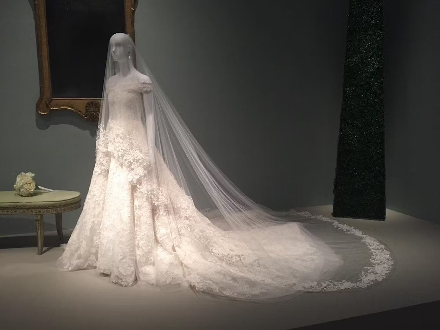 «Мы с Джорджем хотели, чтобы все на нашей свадьбе было романтично и элегантно. Я не могу представить себе другого дизайнера, который смог бы передать это настроение в подвенечном платье. Только Оскар. Наша работа была еще более волшебна, потому что он очень добрый человек и настоящий джентльмен», — рассказала невеста в интервью Vogue. Примечательно, что свадебный образ жены актера хранится в Музее изящных искусств в Хьюстоне, где на него может полюбоваться любой желающий.