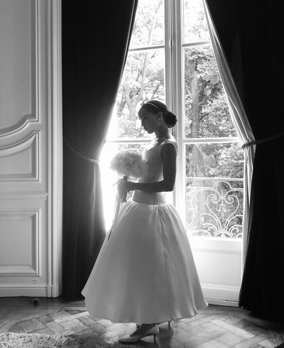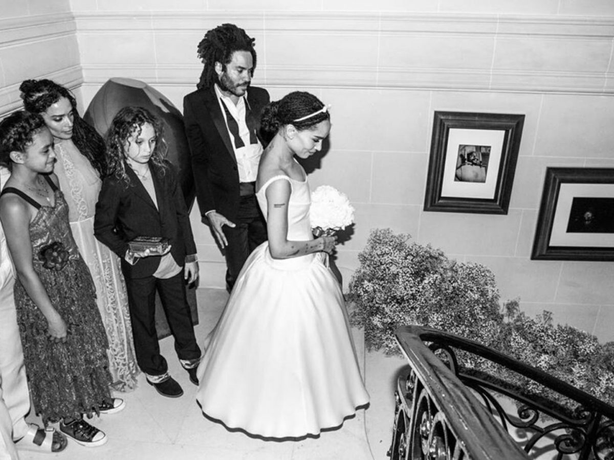 Зои Кравиц и Карл Глусман поженились летом 2019 года в Париже в окружении семьи и близких друзей. Актриса выбрала традиционный вариант: белое корсетное платье с пышной юбкой, которое на заказ для нее сшил Александр Вэнг. «Зои четко представляла, чего хочет. Что-то простое, элегантное, вне времени, но при этом глубокое. У нее был ориентир — Одри Хепберн. Но при этом платье не должно было выглядеть винтажным. Также я хотел немного переосмыслить силуэт и объем», — рассказал позже американский дизайнер о задумке наряда.
