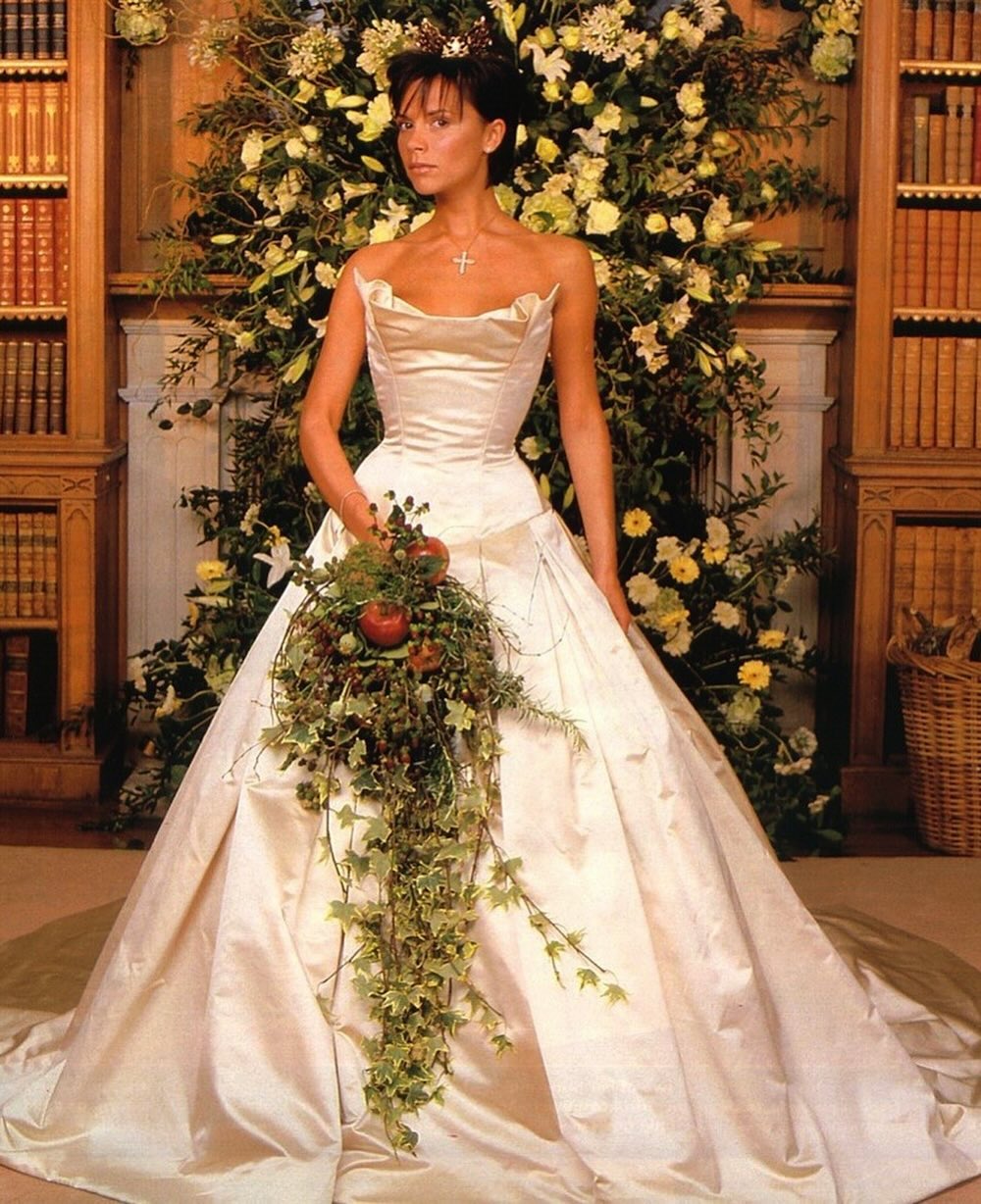 4 июля 1999 года в средневековом замке в пригороде Дублина состоялась церемония бракосочетания Виктории Адамс и Дэвида Бекхэма, которая задала новый свадебный тренд. В то время как все невесты старались выбрать сложные модерновые наряды, Виктория обратилась к дому Vera Wang в поисках классического платья.