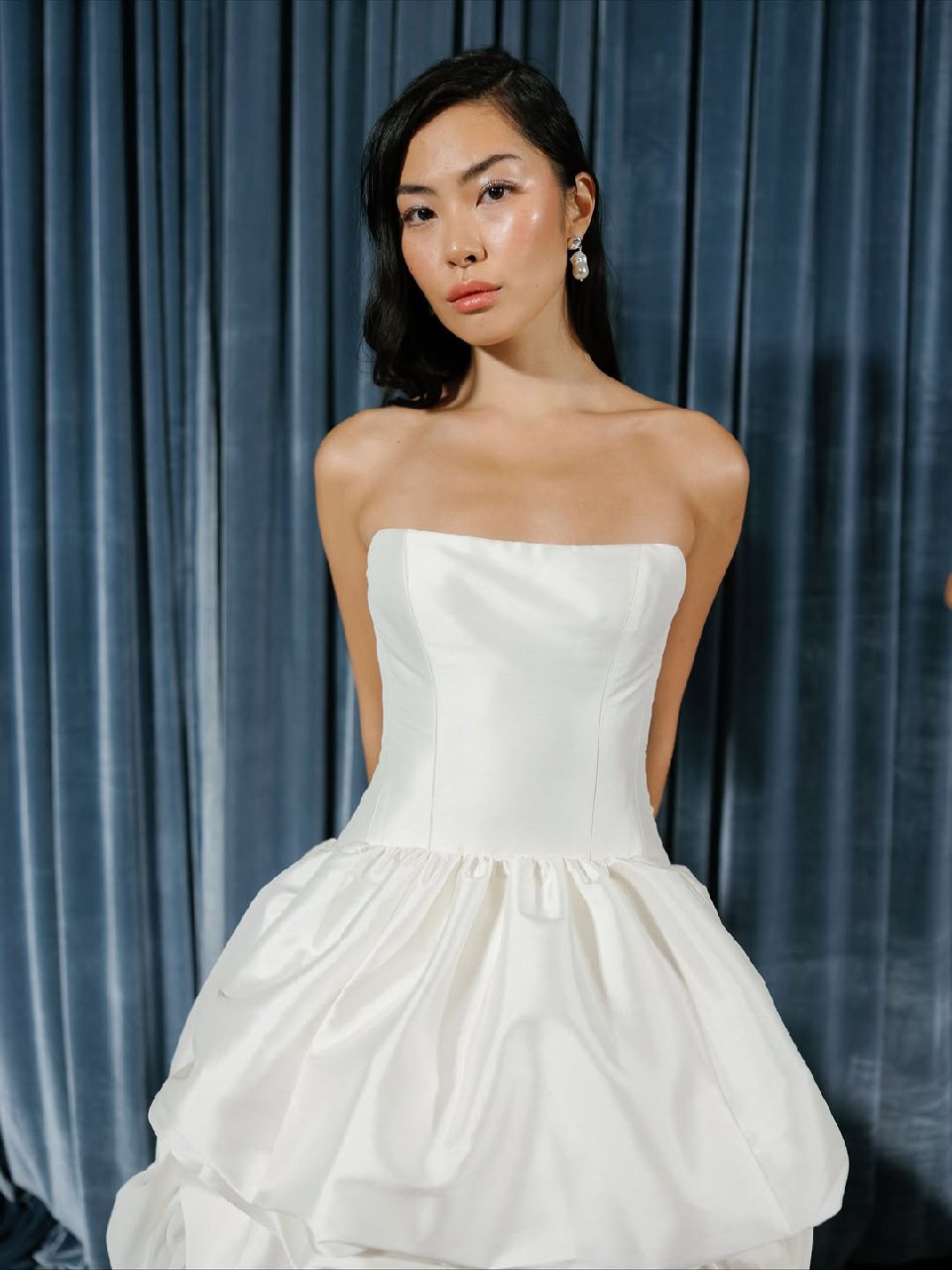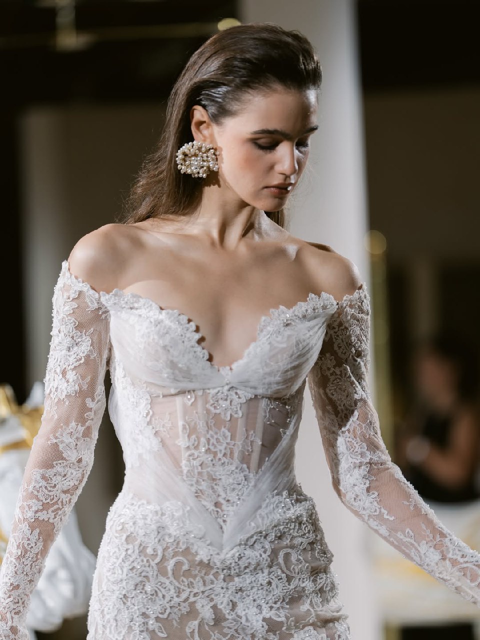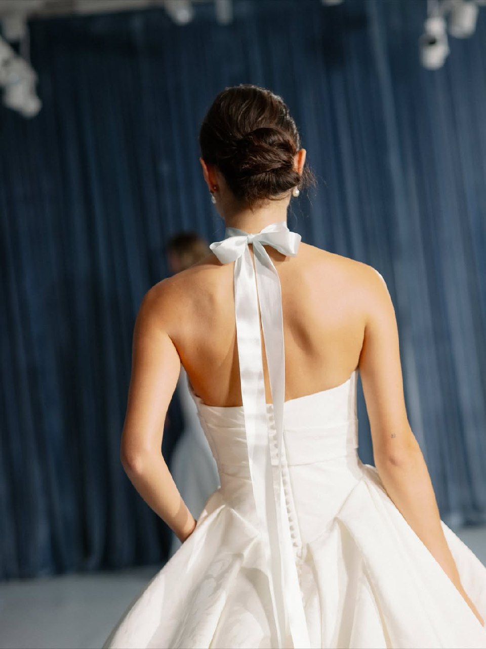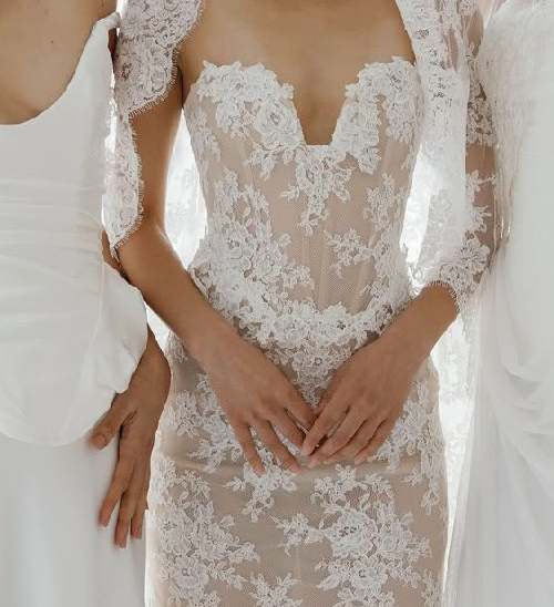 Забудьте о тугих и высоких пучках, будущей весной и летом актуальна его непринужденная низкая версия. Этот тренд — идеальное воплощение современной элегантности. Пучок может выглядеть так, будто невеста сделала его всего за несколько минут до торжества, но за кажущейся простотой кроется ювелирная работа стилистов. Бренды Nicole + Felicia Couture, Jenny Yoo и другие показали, что низкий пучок может быть разным: от гладкого и собранного в тугой шарик у основания шеи до мягкого и текстурированного, с выпущенными прядями-обрамляющими лицо. Такой пучок не утяжеляет образ, а, наоборот, подчеркивает изящество шеи и линию декольте.