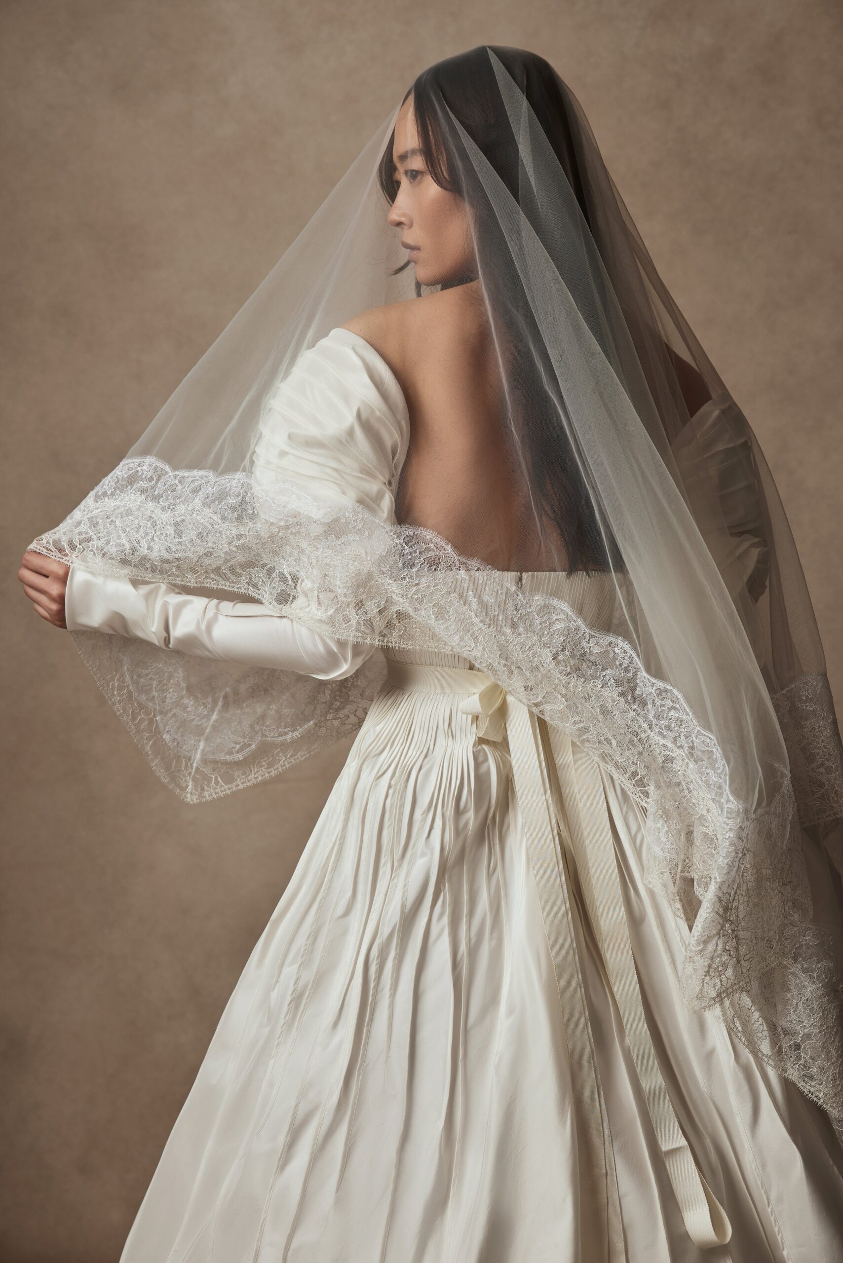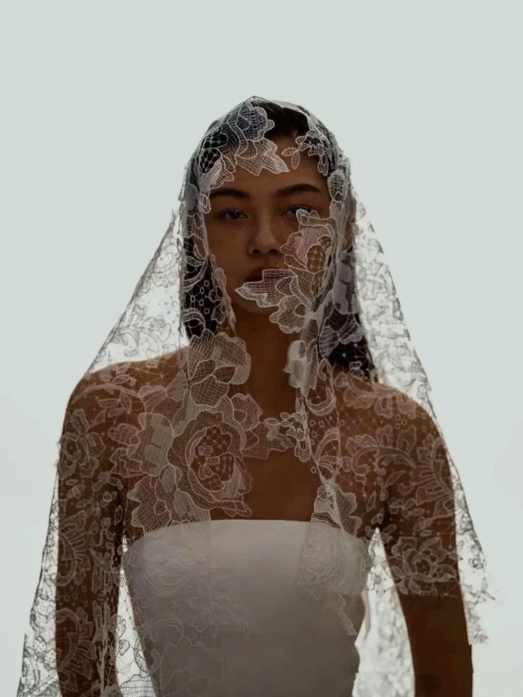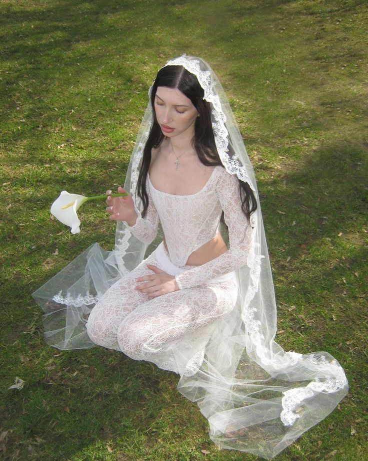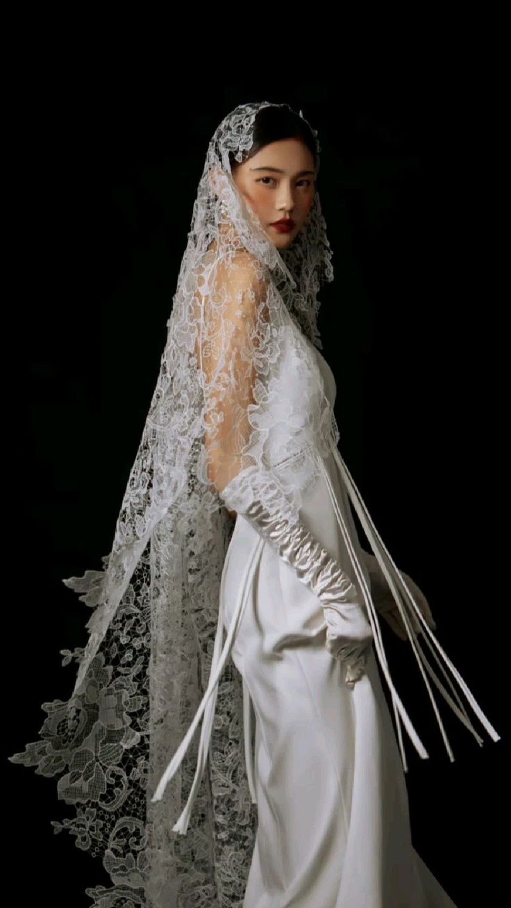 Фата может стать ключевым акцентом. Длинные модели из испанского тюля или короткие «птичьи сеточки» (birdcage) идеально впишутся в образ. Из украшений выбирайте неброские, но выразительные вещи: жемчужные серьги-жирандоли, кружевные перчатки до локтя, изящный чокер.