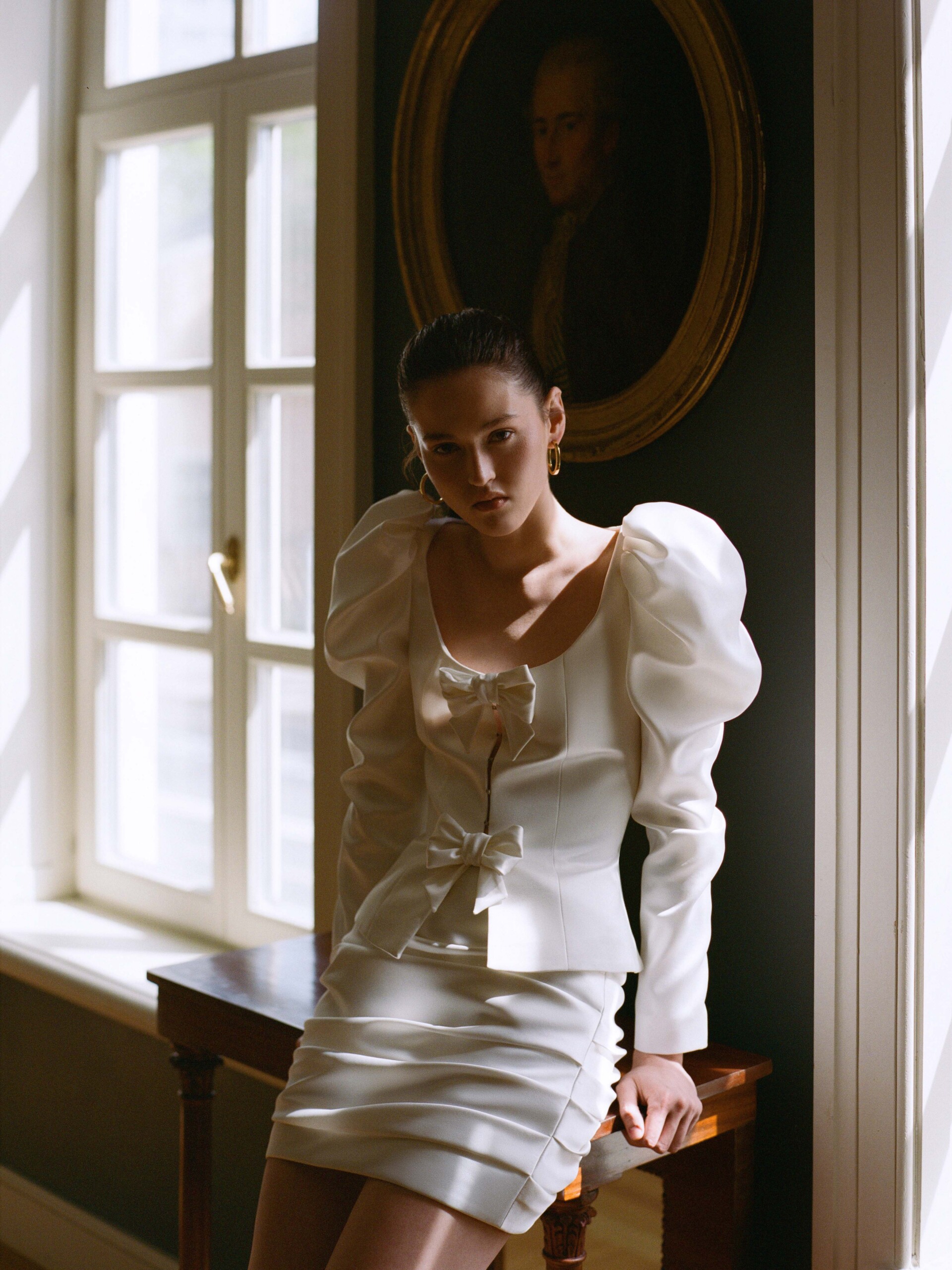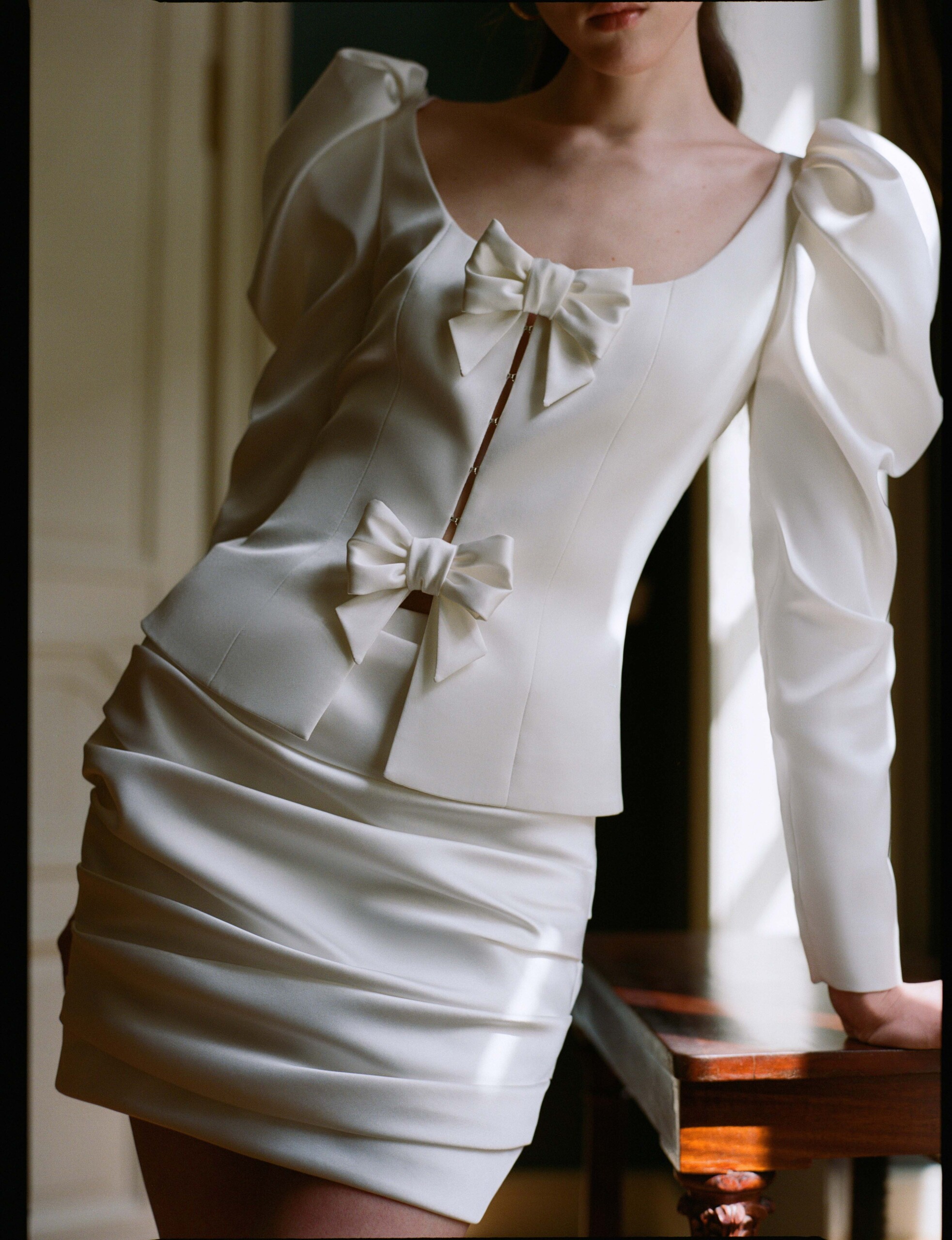 Коллекция Rasario Bridal умело сочетает игривую романтику с классической элегантностью. Банты, рюши и выразительные детали вносят нотки изящества и легкости в каждый образ, делая его неповторимым. Это позволит каждой невесте ощутить свою уникальность и неотразимость в самый важный для нее день.