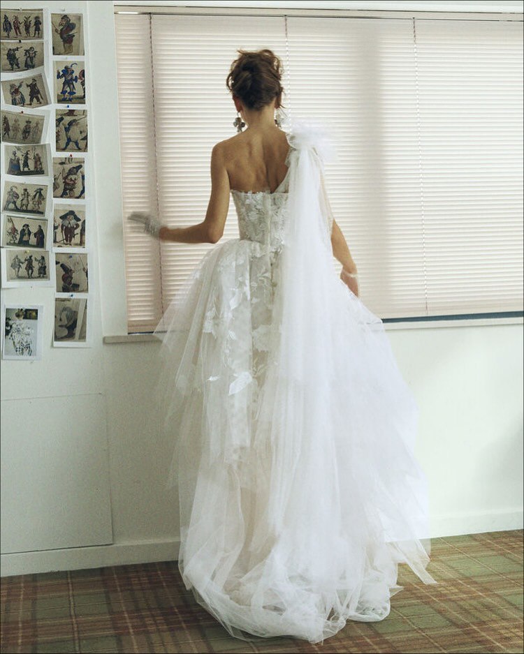 Текстура играет ключевую роль в новой коллекции. Дизайны раскрываются подобно бутону благодаря воланам из тюля и мягкой, полупрозрачной органзе. Богатые жаккарды, бледно-розовая итальянская тафта, а также винтажные кружева и ткани с эффектом мягкого состаривания вызывают ощущение винтажных нарядов, бережно хранимых на протяжении долгого времени. Эта коллекция — путешествие в элегантную эпоху, где каждая деталь говорит об утонченной красоте и вечной романтике.