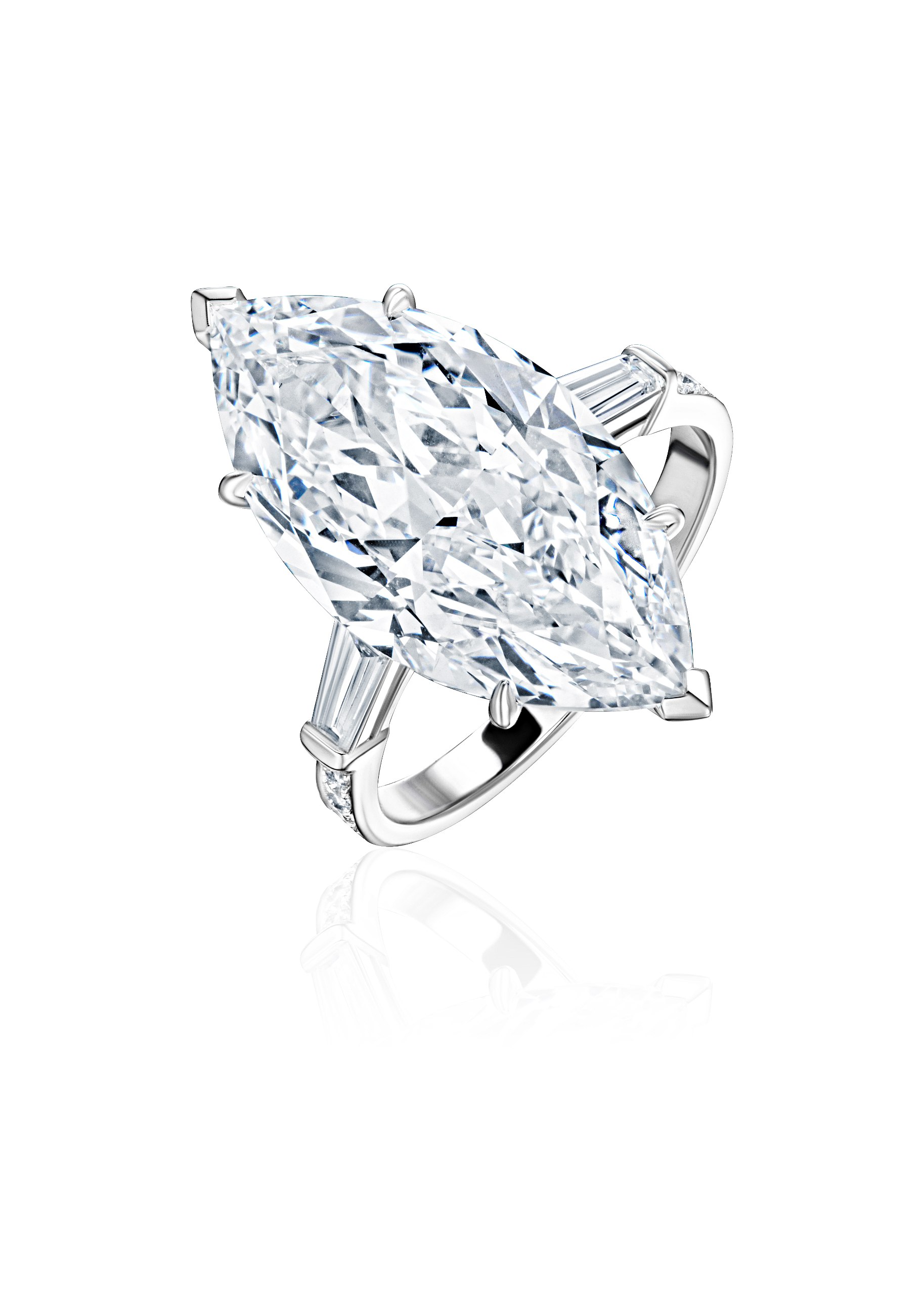 Кольцо с бриллиантом 10,11 карат D/VVS1 и 14 бриллиантами 0,543 карат в белом золоте 750 пробы, Cluev