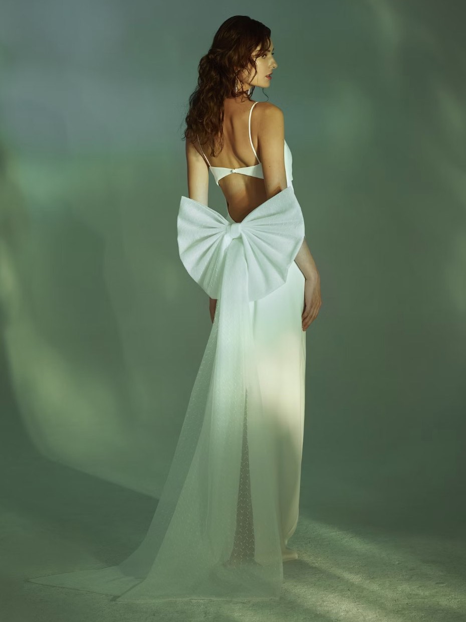 Довольно стремительно банты добрались и до свадебной моды. Причем в самых различных вариациях: от миниатюрных бантиков из ленточек до объемных декоративных бантов. Одними из первых тенденцию подхватили Elie Saab: модный Дом выпустил целую коллекцию со всевозможными видами бантов. Вскоре эту фишку подхватили и другие бренды. Обилие бантов можно найти у таких брендов, как Simone Rocha, MACH & MACH, Self-Portrait. Мы собрали 10 стильных вещей, которые добавят очарования в ваш свадебный образ.