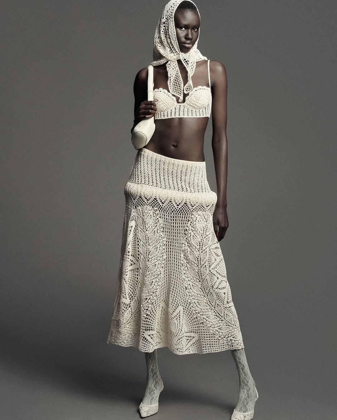 Дизайнер назвала коллекцию Slavic Chic или «Славянский шик». Многие элементы, такие как платочки и кружево кроше, недвусмысленно отсылают к славянской эстетике. Как и всегда, коллекции Magda Butrym воспевают женственность и изящность. Если вы в ближайшее время планируете свадьбу, обратите внимание на трендовые элементы из лукбука бренда. Кружевные колготы, очаровательные платочки (интересная альтернатива фате), объемные длинные перчатки из плотного материала и аппликации в виде цветов смотрятся свежо и необычно. Советуем взять на заметку!
