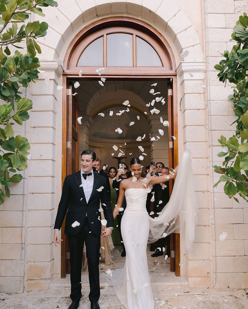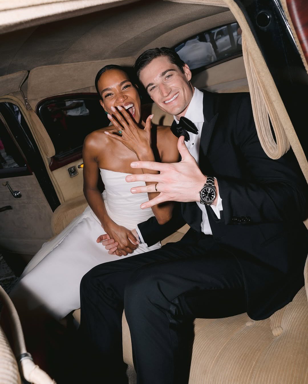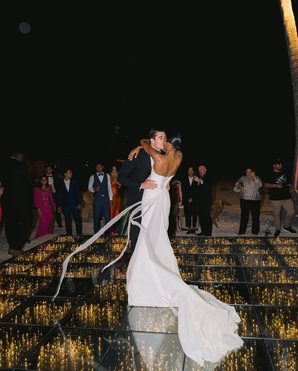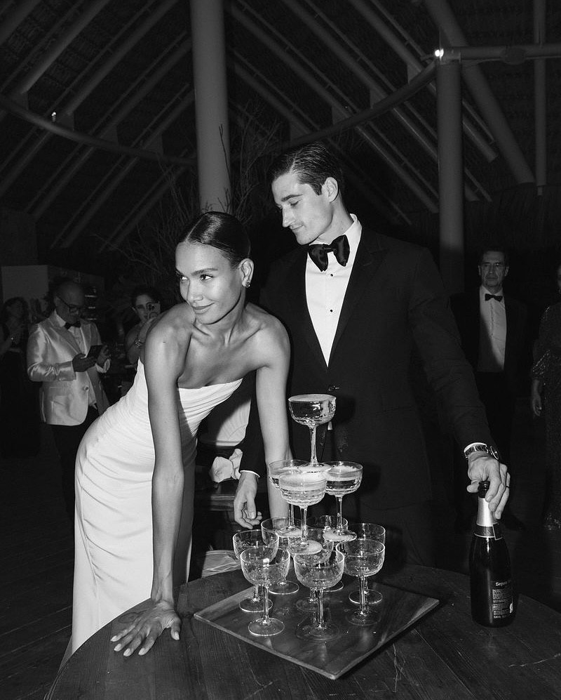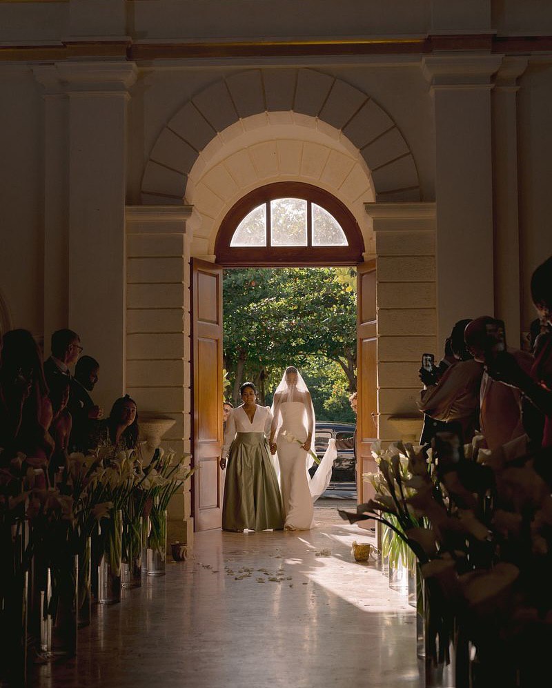 Для официальной части церемонии 36-летняя невеста выбрала платье от колумбийского дизайнера Esteban Cortázar, ее образ дополнила лаконичная фата и помолвочное кольцо с ярким изумрудом. Основное мероприятие прошло на берегу моря. Мероприятие включало традиционные доминиканские элементы — среди закусок пряные эмпанадас, на торжестве также был сигарный бар, не обошлось и без Hora Loca (вечеринка после основной части). Свадьбу украшал элегантный и минималистичный декор, акценты зеленого цвета. В финале вечера пара и гости отправились танцевать босиком на пляже.