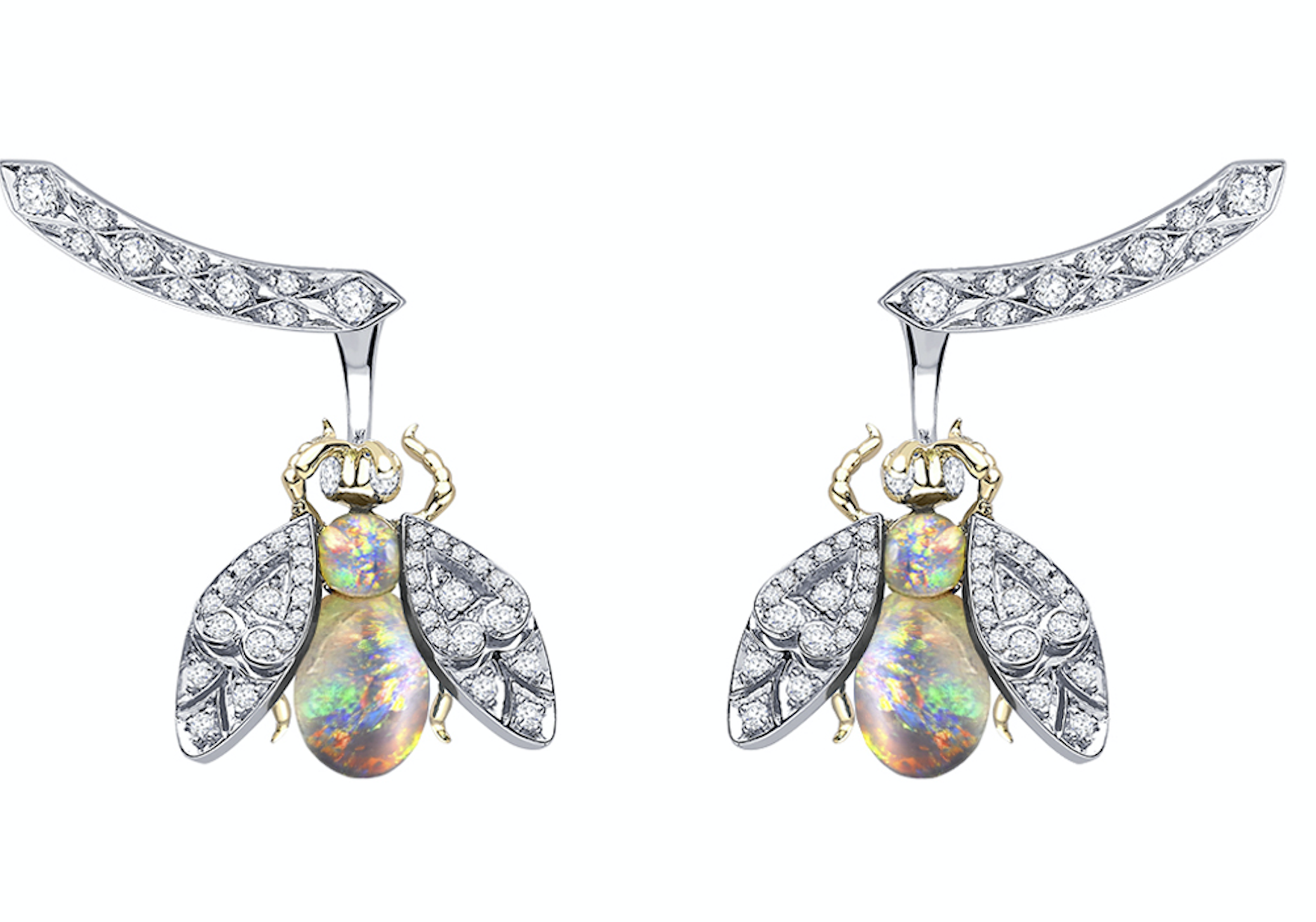 Garrard, серьги Enchanted Palace, белое и желтое золото, бриллианты, опалы-кабошоны