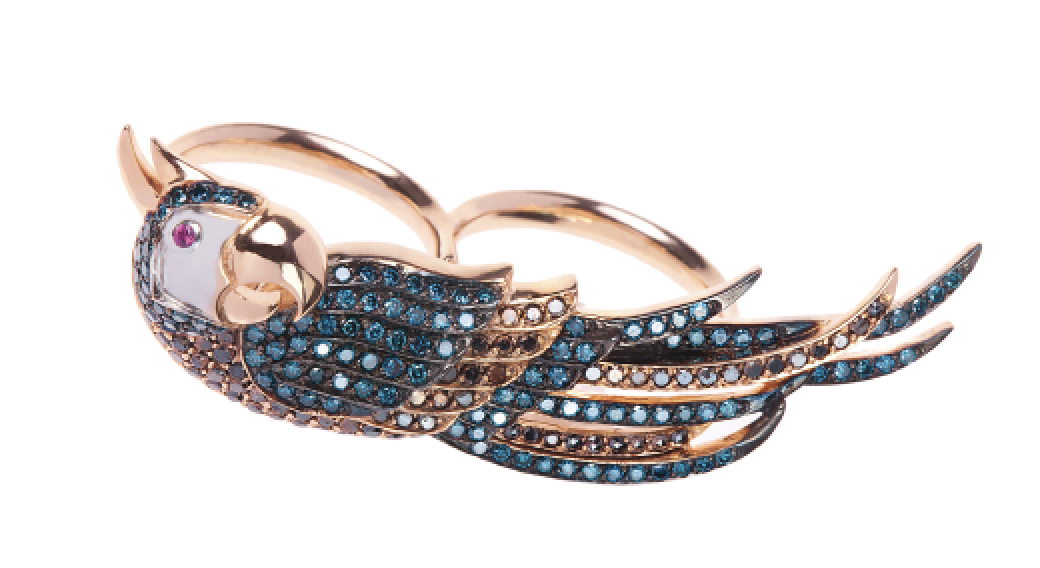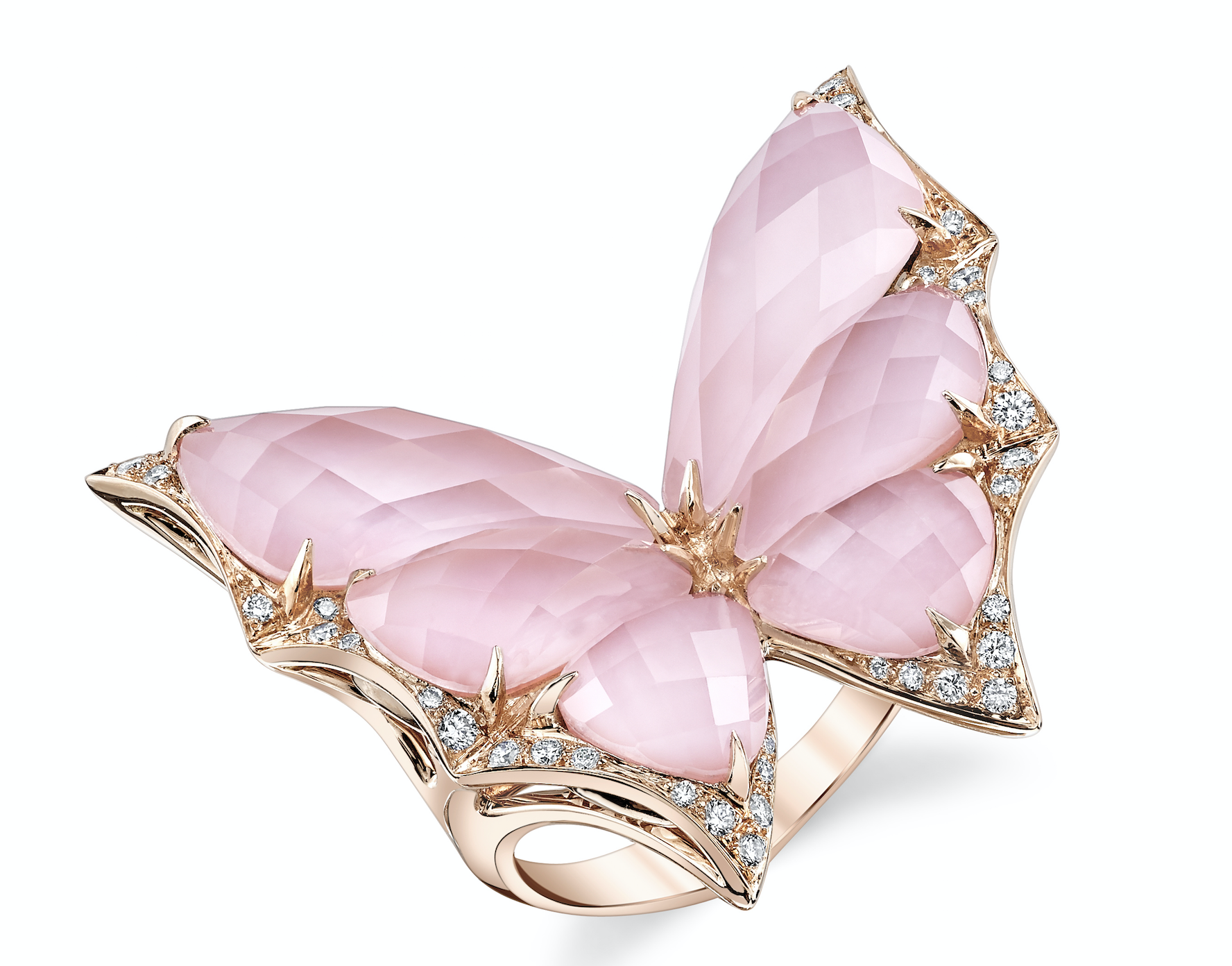 Stephen Webster, кольцо Fly by night, розовое золото, розовый опал, бриллианты