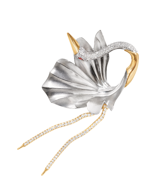 Ole Lynggaard Copenhagen, брошь, белое и желтое золото, бриллианты, рубины