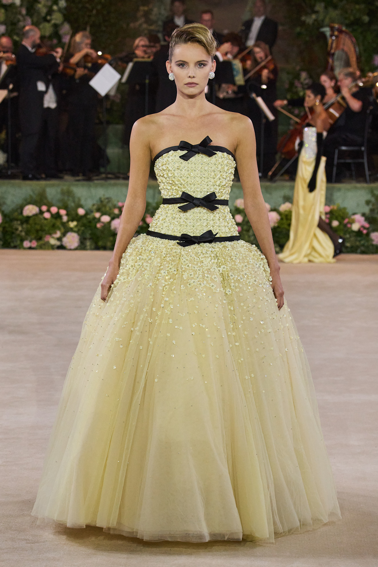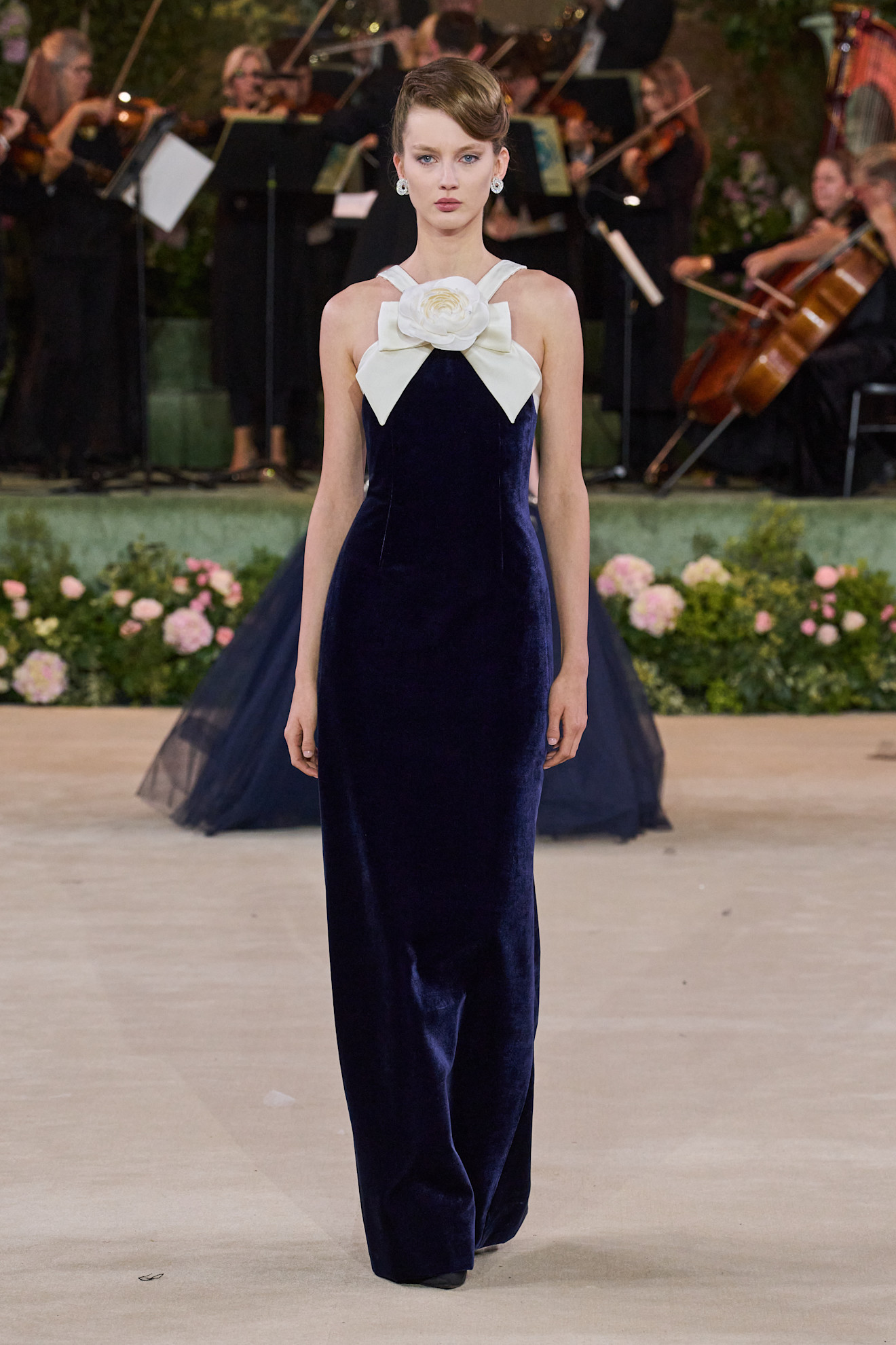 Основными материалами стали воздушный тюль, придающий объем подолам платьев и юбок, и тяжелый бархат, намеренно контрастирующий с его легкостью. Коллекция получилась масштабной и эффектной, а многие образы выглядят готовыми для красных дорожек предстоящего светского сезона.