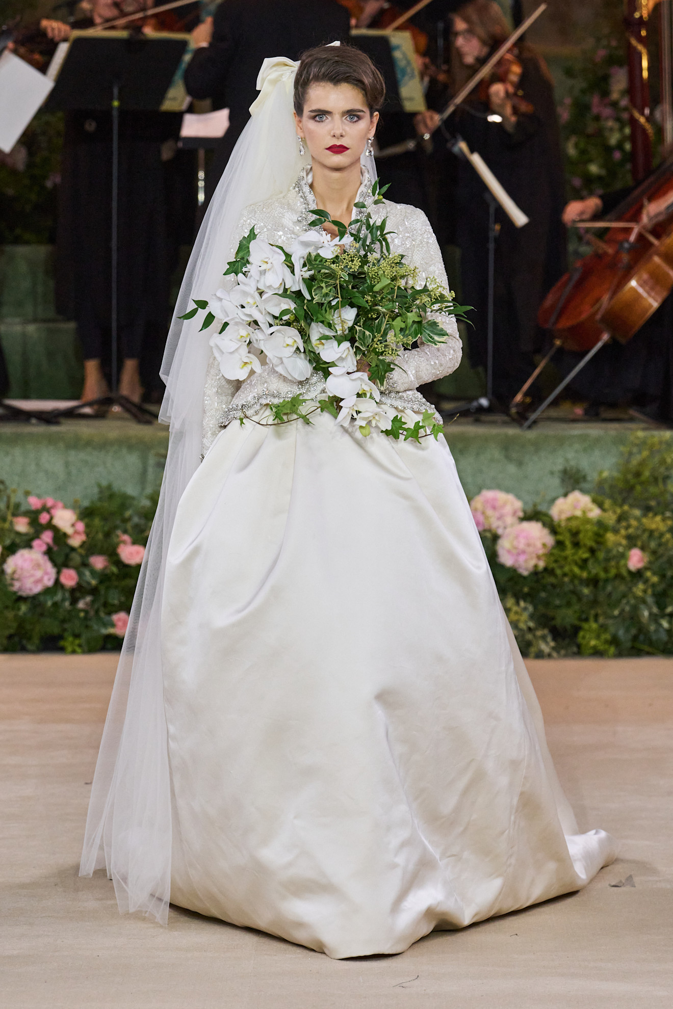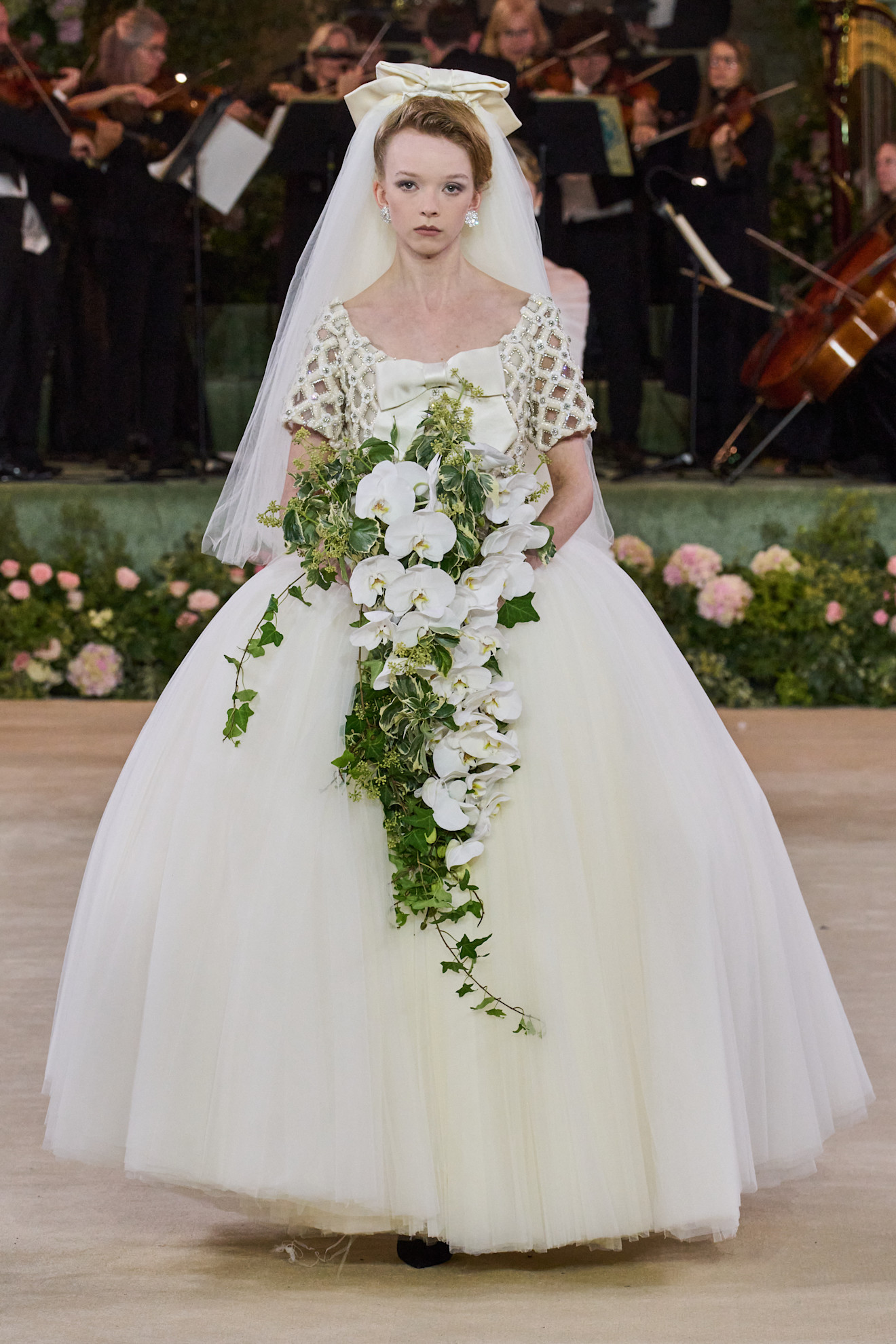 Новая коллекция является логичным продолжением предыдущих работ дизайнера, в которых он уже исследовал темы бантов, цветов и образа невесты. Однако если раньше, как в осенне-зимней коллекции 2026 года, фата была лишь аксессуаром, то теперь Ричард Куинн представил полноценные и законченные свадебные наряды.