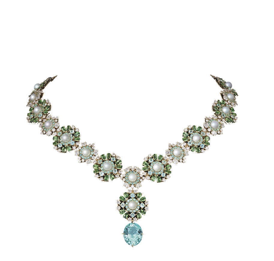 • Dior, колье, желтое золото, турмалины, цавориты, жемчуг, бриллианты