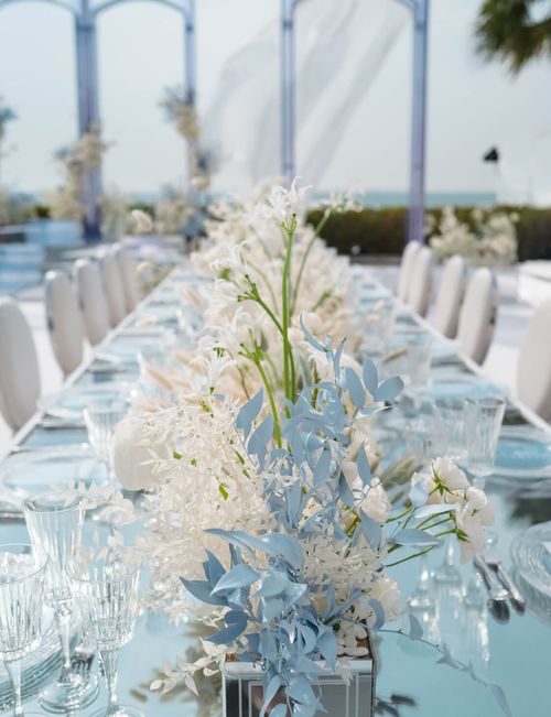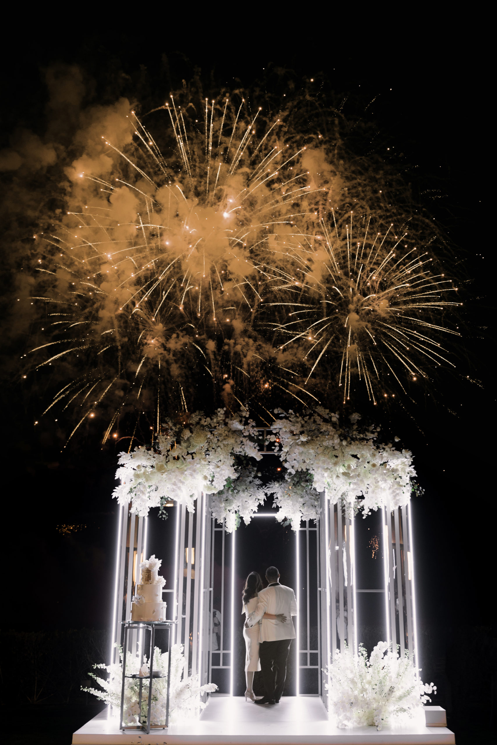 Мы вдохновились самой площадкой: свадьба проходила в одном из красивейших бутик-отелей Дубая — Bulgari Resort Dubai, где классическая история встречается с оазисом роскоши. Именно это мы хотели подчеркнуть в нашем декоре, в котором белый отвечает за классику, чистоту и элегантность, а черный — за строгость, авторитет и изысканность.