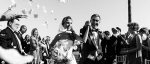 Эффектное появление жениха на мотоцикле под трек из фильма «Миссия невыполнима» внесло нотку бунтарства в классическую церемонию с трогательными клятвами и эмоциями гостей в элегантных нарядах согласно дресс-коду black tie.