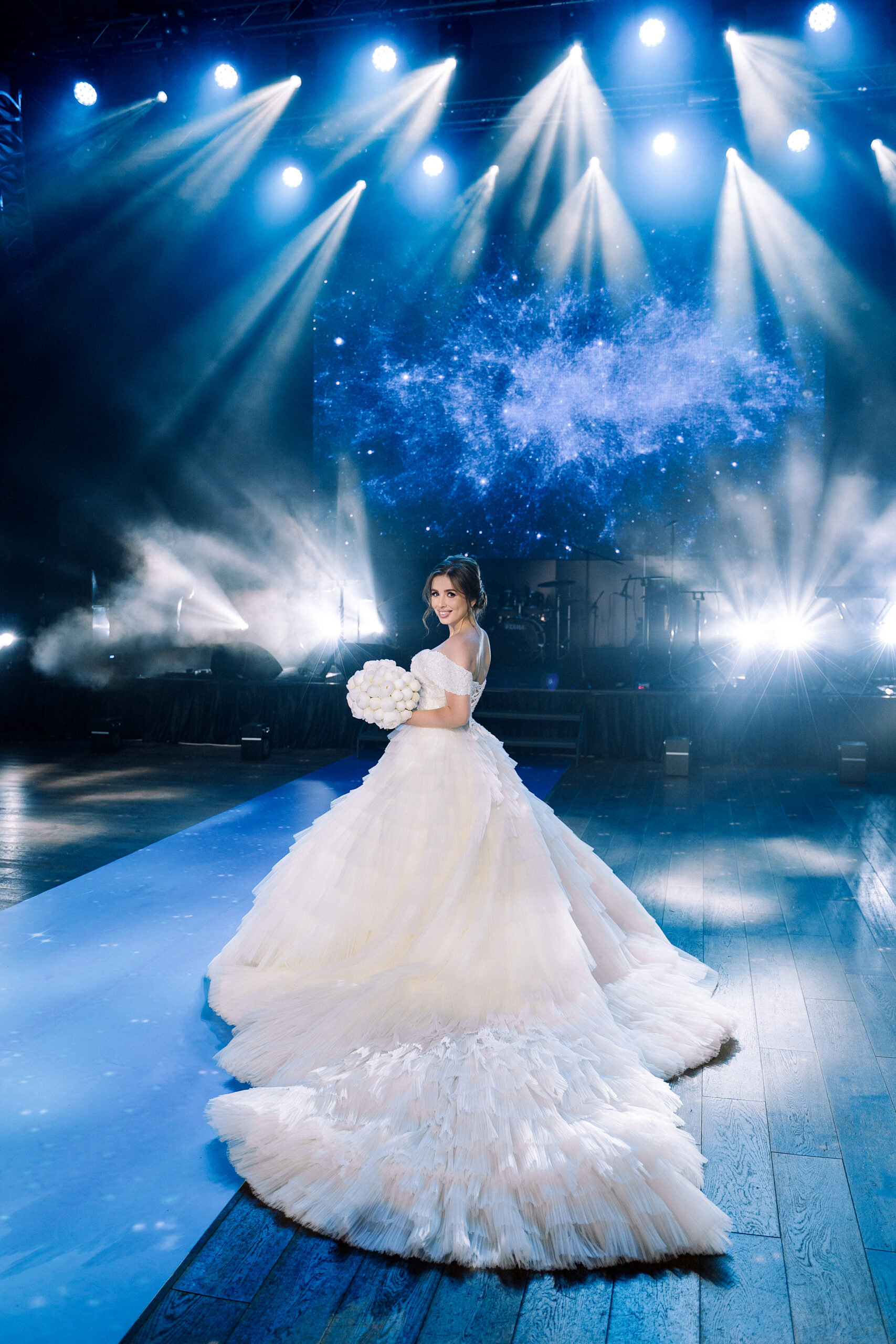 На таких проектах во всё вложен смысл и важна каждая деталь: элементы декора, первый танец, ключевая фраза, свет и звук на площадке — всё продумано и отражает пару. Поэтому здесь очень важна командная работа организатора, фотографа и художника по свету. Съемка с идеально выстроенной сценой не снимала с меня ответственности, ведь нужно было постоянно координировать смещение лучей в зависимости от снимаемого сюжета, чтобы картинка сложилась. Важно было в этот момент не потерять фокус на паре и дополнить их историю любви индивидуальными деталями. Нужные ракурсы, правильно подобранное оборудование и постобработка позволили мне передать весь масштаб, настроение и стиль торжества. Проект «A Sky full of stars» — это работа большой команды, для особенной истории двух любящих людей", — рассказывает фотограф Эдуард Бугаев.