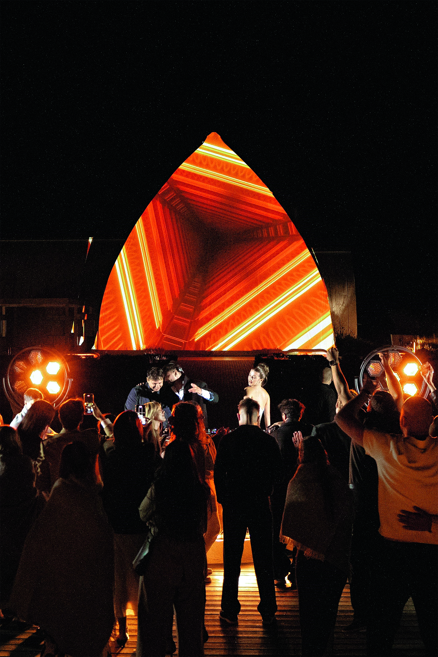 Утро пары отражало любовь жениха к музыке и чистоту пространства. А музыка дарила чувство полной свободы. Вдохновившись музыкальным фестивалем AfterLife, KARUNA Event устроили техно-вечеринку на пирсе. И «зажгли» здание банкетного зала при помощи яркого 3D-мэппинга.