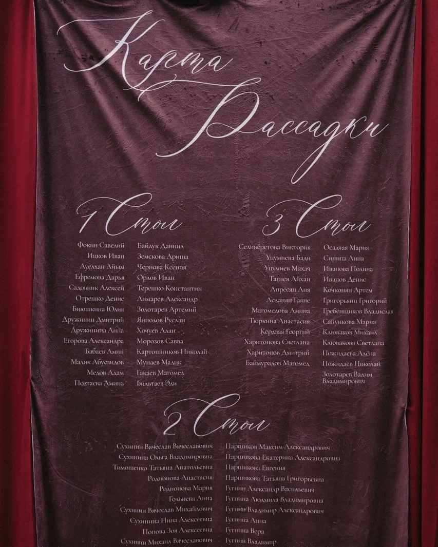 Прямоугольный торт длиной около метра, изогнутый волной стол, 219 насыпных свечей и декор в красно-бордовой палитре — свадьба Ивана и Софьи запомнилась не только паре, но и их многочисленным гостям.