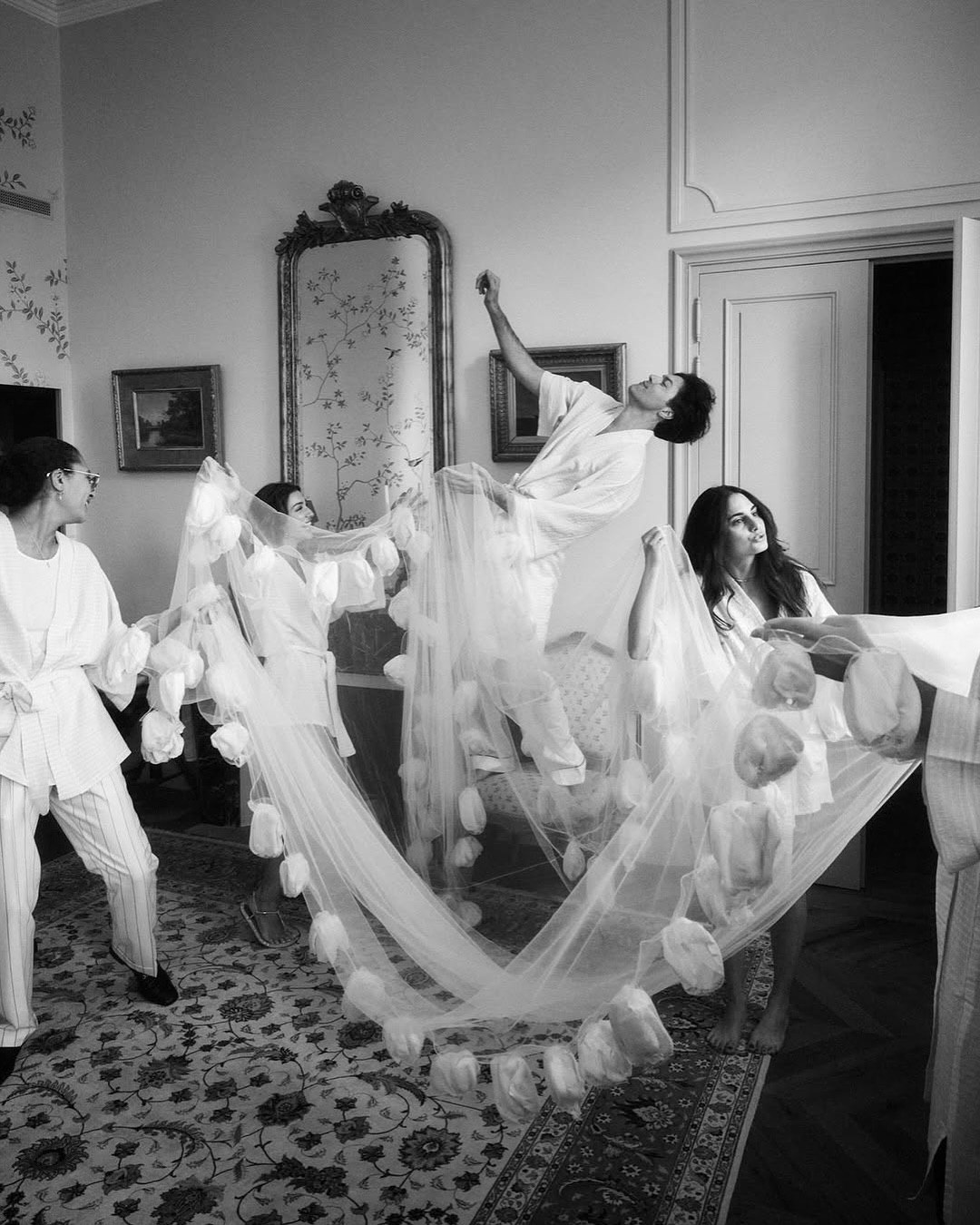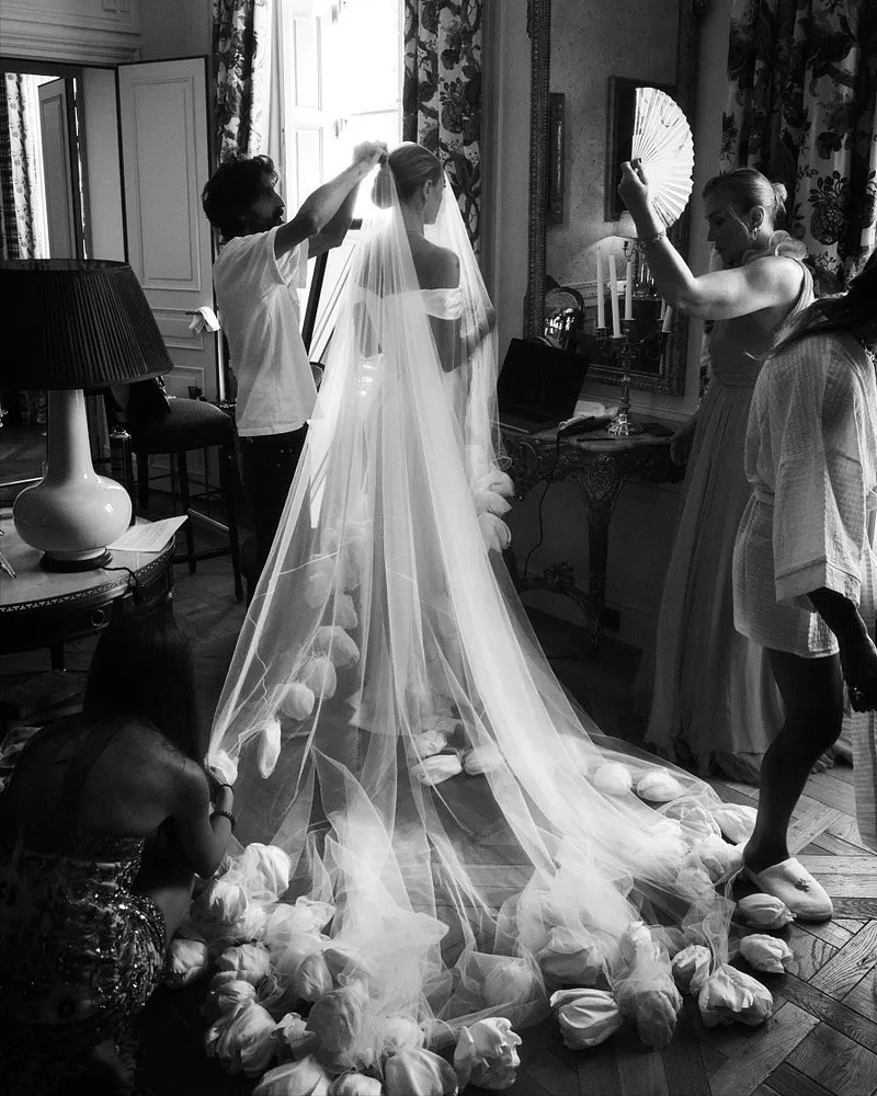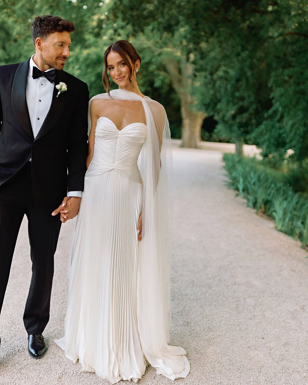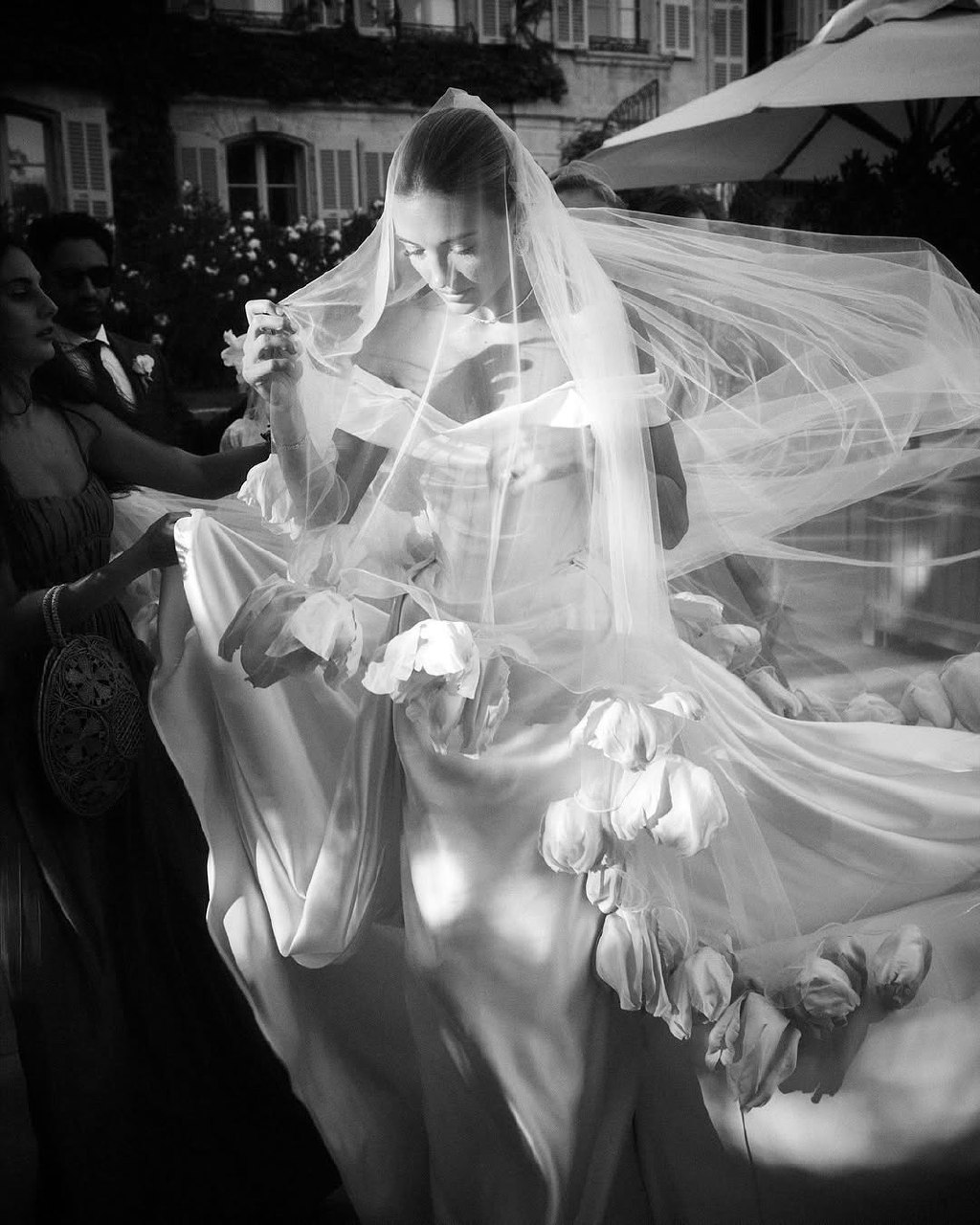 Бразильская пара Мария и Нико устроили камерную церемонию и бунтарскую фотосессию на фоне летнего Парижа. Классическая архитектору французской столицы контрастировала с альтернативным стилем пары, такой жест стал тихим манифестом — приглашением смело мечтать, любить и переосмыслить традиции.
