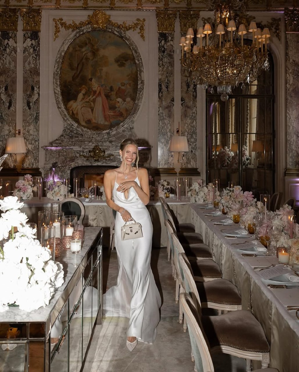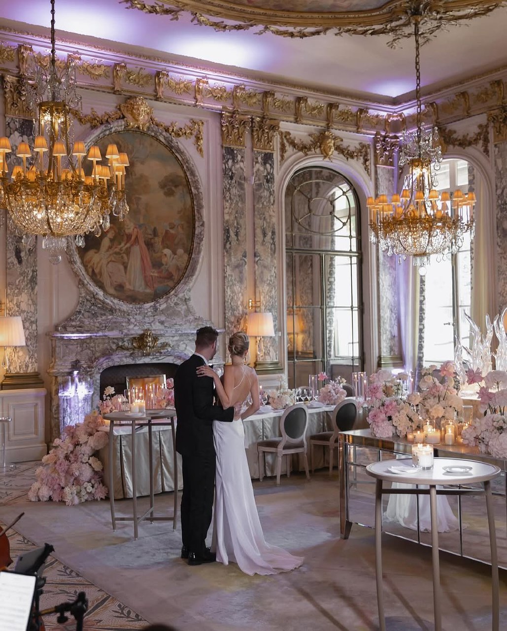 Инфлюенсер Леони Хани и фотограф Александр Галиевский отпраздновали свою помолвку роскошным ужином в знаменитом отеле Le Meurice в Париже. В окружении близких друзей и родственников пара устроила незабываемый вечер, наполненный высокой модой, романтичным цветочным дизайном и вечной парижской элегантностью.