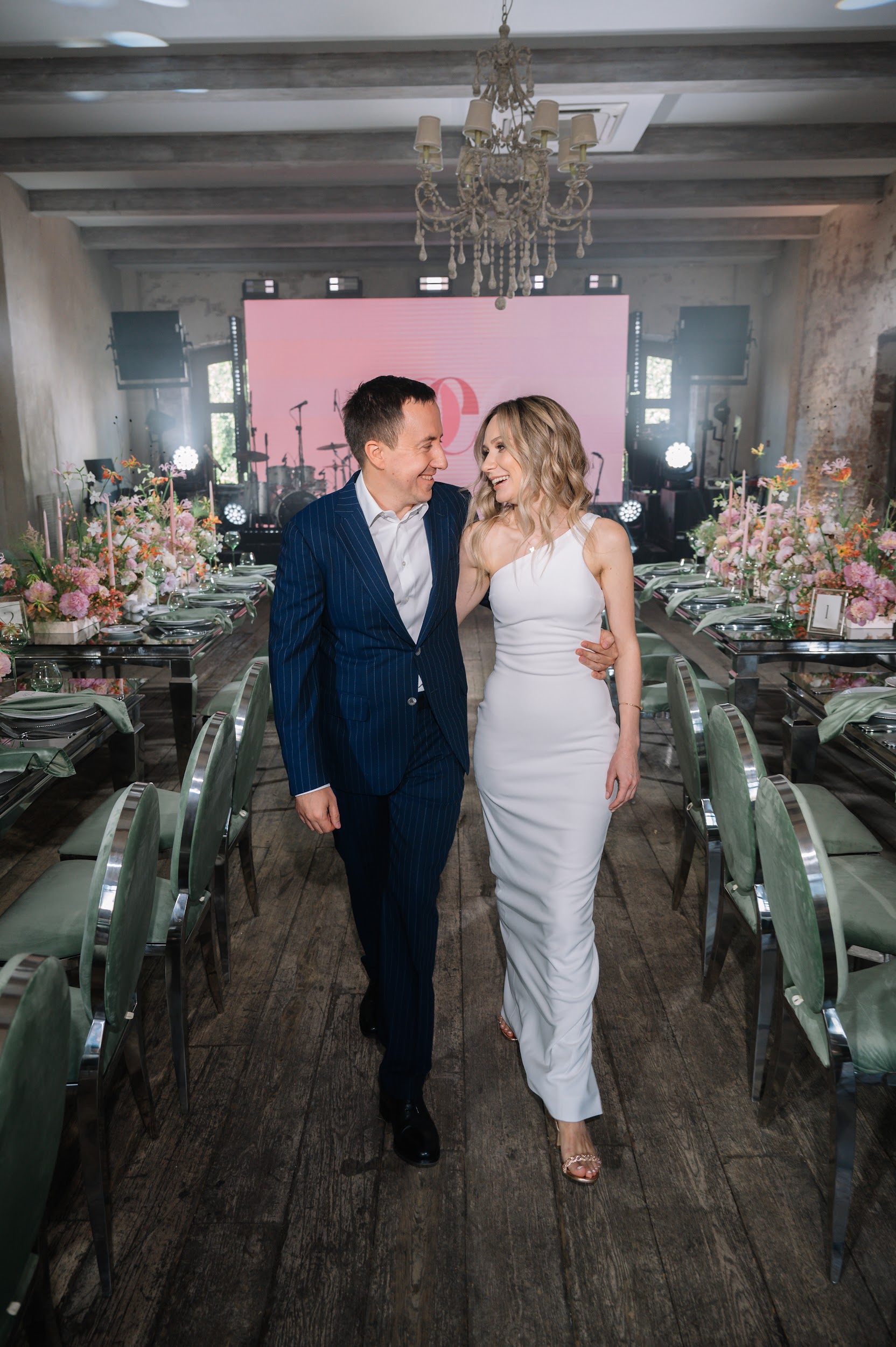 В 2012 году мы организовали свадьбу для Олеси и Жени: красивый ресторан на Саввинской набережной, балетные пачки, черешня, веселье! Изюминкой вечера была love story, которую мы снимали вместе с Максом Маркевичем (он и вел свадьбу). В конце праздника жених сказал невесте: «Мы обязательно должны это повторить!» И вот прошло 10 лет. И снова площадка на набережной — исторический особняк в самом центре Москвы. Снова те же друзья, горящие глаза, совместные цели, любовь, взаимная поддержка и сыновья-двойняшки. Да и снова фильм, но уже история глазами детей: как же на самом деле познакомились родители? В Италии или в Индии? Или, может, на дискотеке?