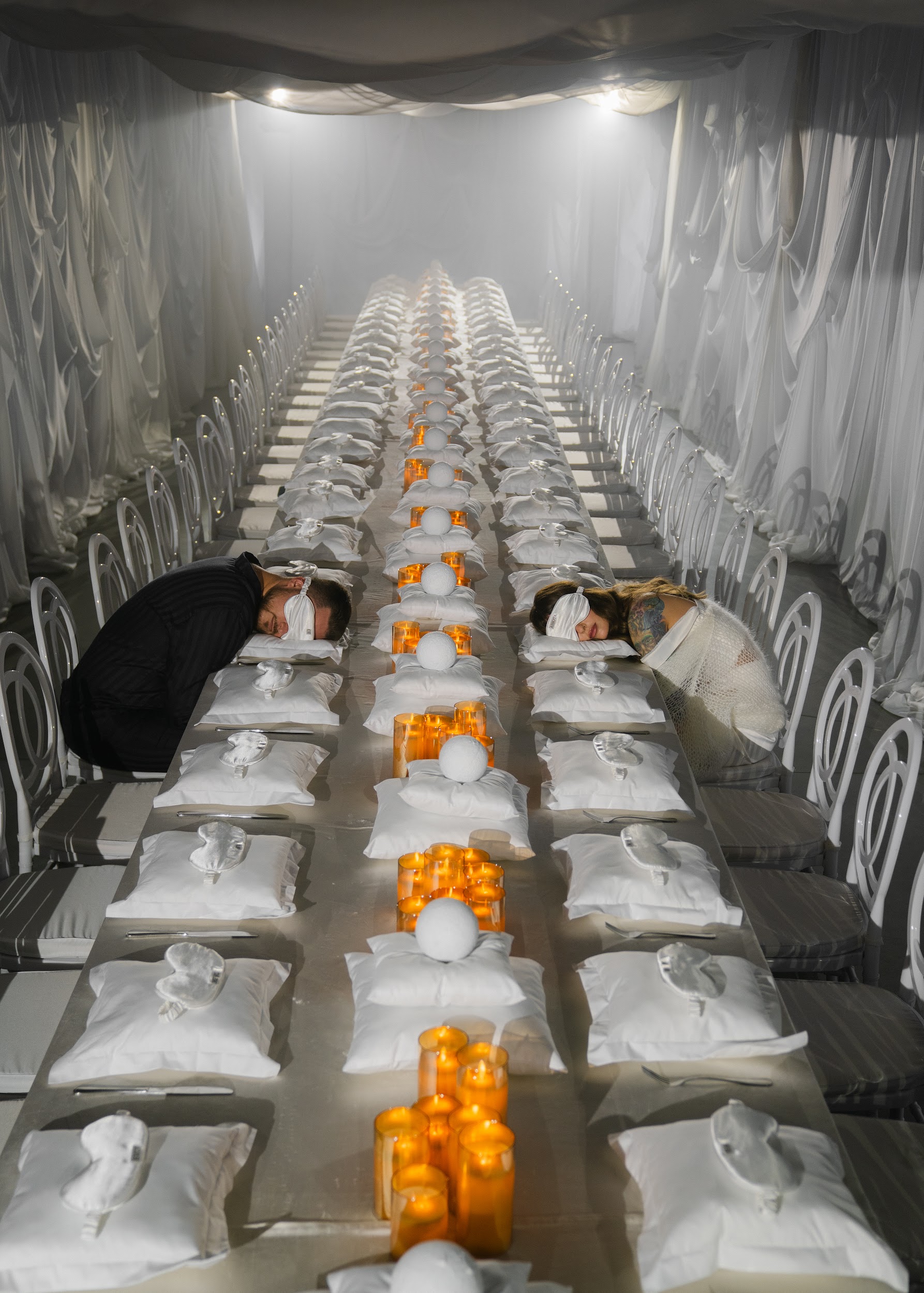 — Начинался праздник с классического ужина в ресторане на первом этаже, но сперва 10 минут сна на уютных подушках и в масках.