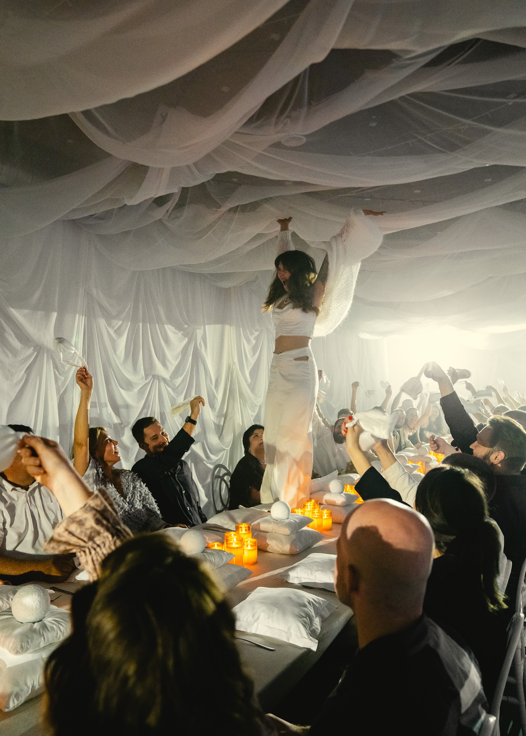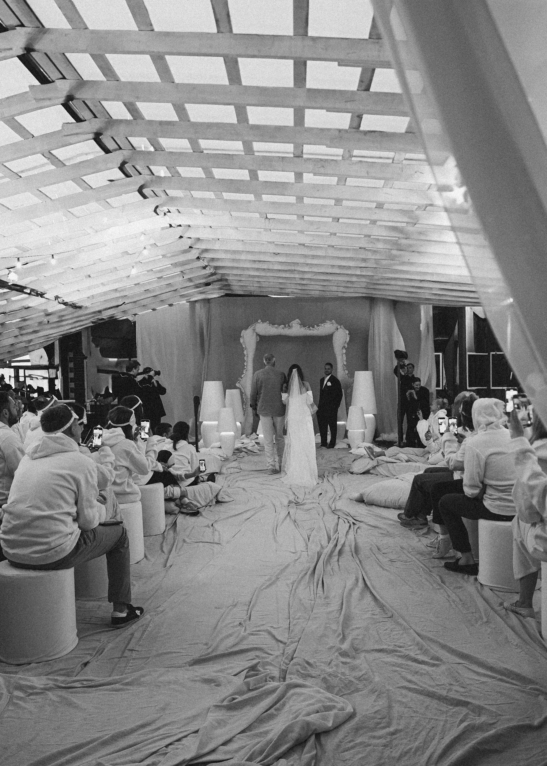 — Самым близким гостям предложили почетные места на кроватях с обслуживанием all inclusive.