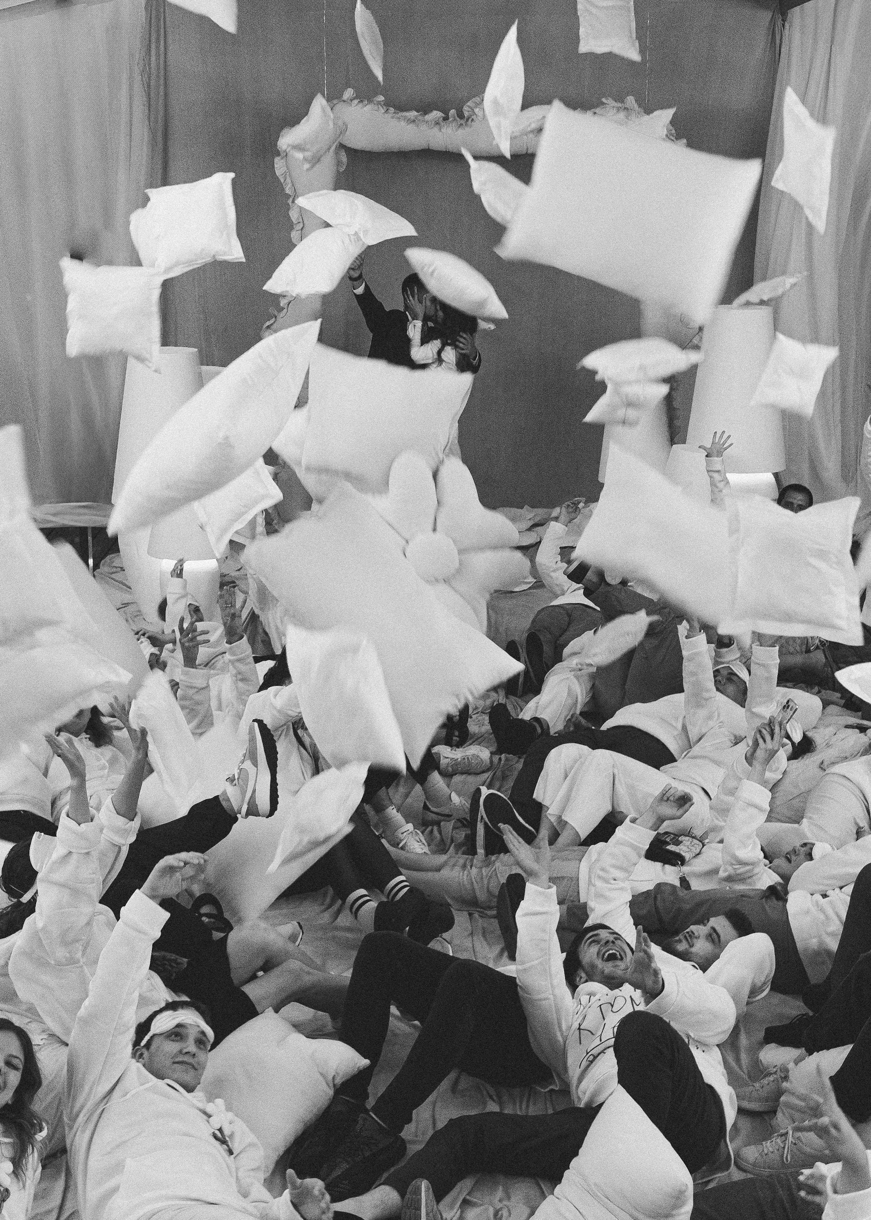 Эту тема была распространена на весь свадебный день, все было мягко, тактильно, как для самого уютного сна, но при этом провокационно и очень смешно.
