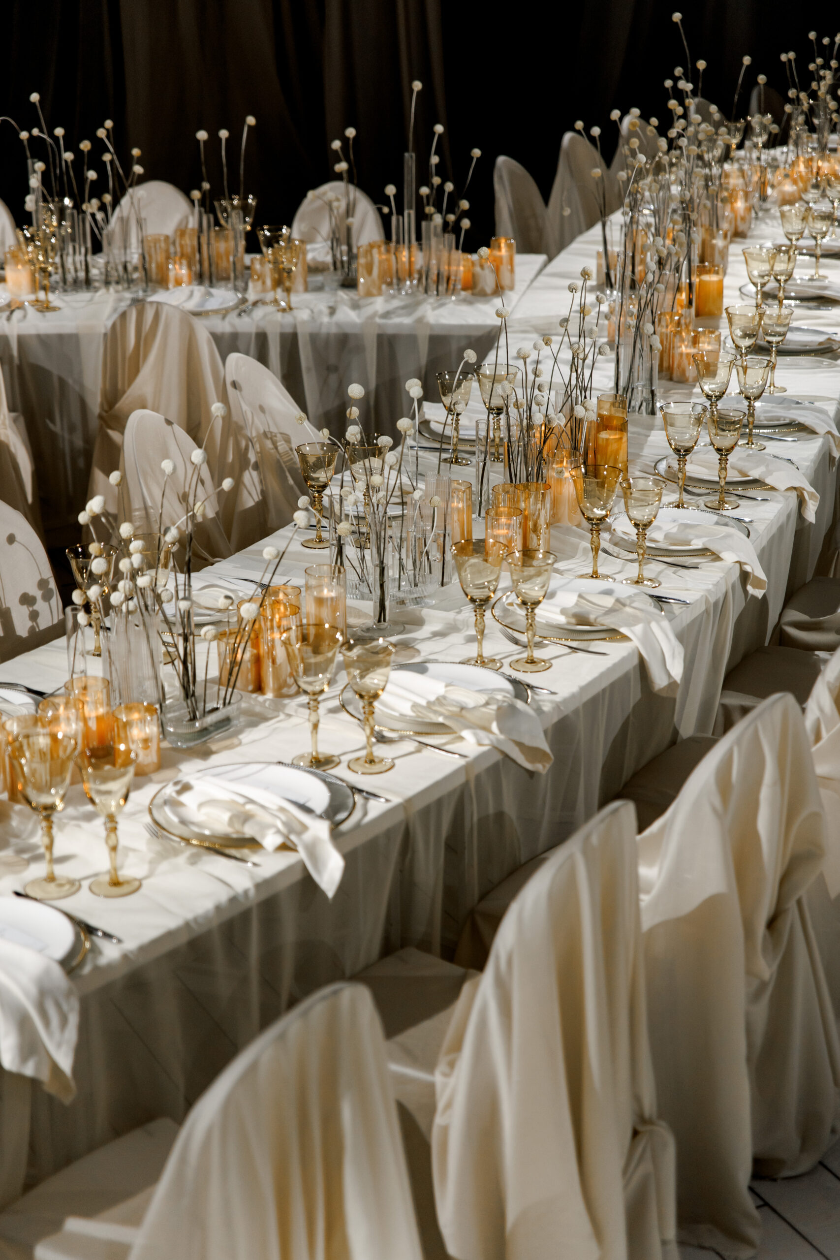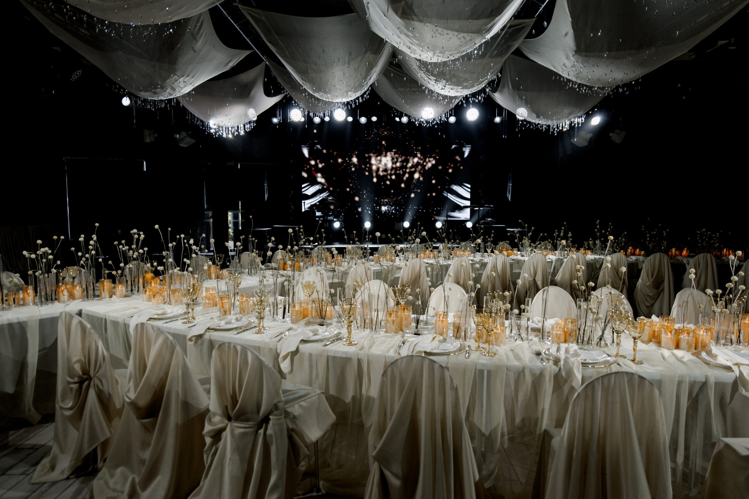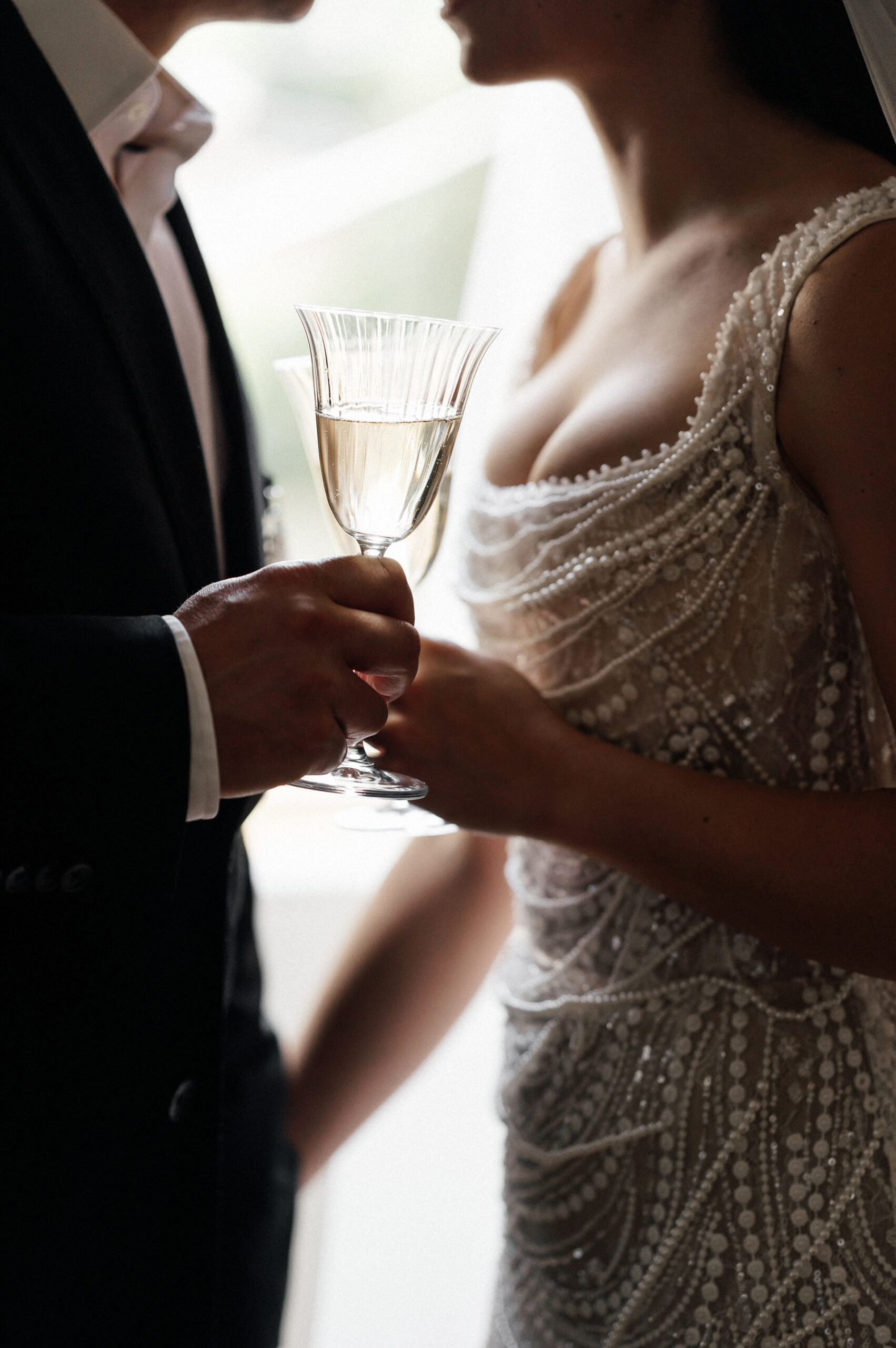 Концепции и четкого представления, кроме цветов, у нас не было. После заполнения анкеты от организатора пришло осознание, что мы очень любим шампанское и являемся невероятными ценителями этого напитка. Ирина предложила заложить в основу нашего торжества этот легкий, пузыристый напиток с его переливами, фактурами и цветом. Это оказалось невероятно «про нас», про наш стиль и наше отношение к жизни.