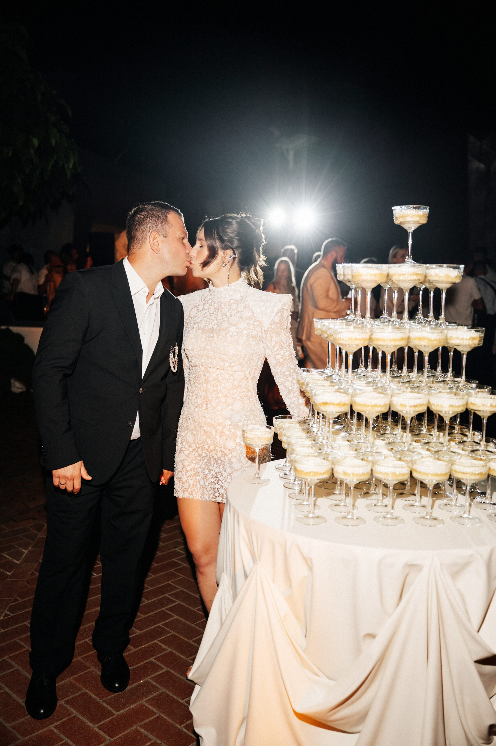 Концепция нашего торжества — Brut de love, про умение наслаждаться жизнью и легкость в отношениях. Ведь, как и вино, ты вначале вызреваешь, потом выбор винограда и выбор своей второй половинки, а дальше выдержка: тишина, давление, терпение. Тот момент, когда ты думаешь, что ничего не происходит, но на самом деле все происходит именно тогда, когда в бутылке появляются пузырьки, а в отношениях появляется легкость, а ты осознаешь, что все не зря.