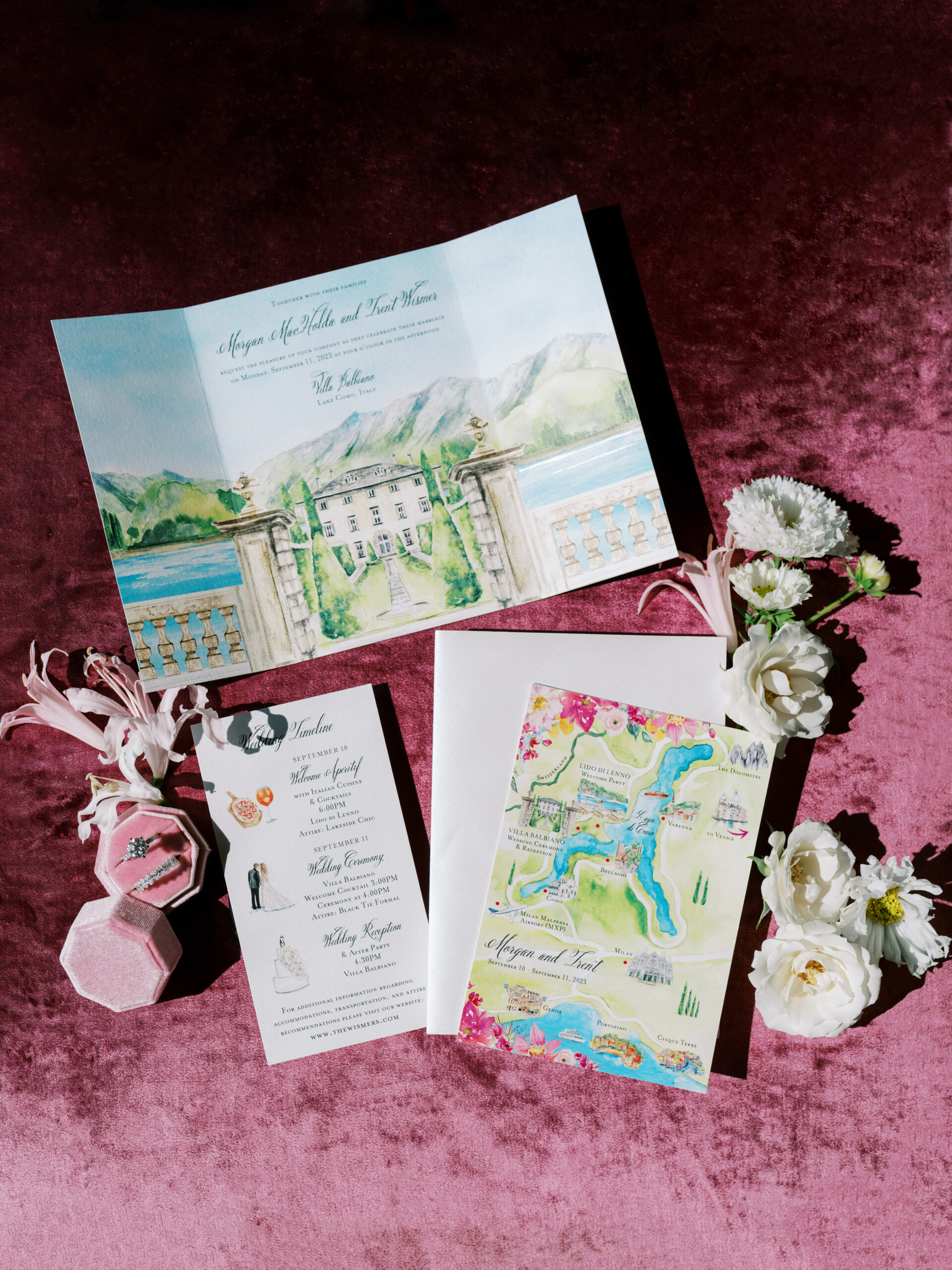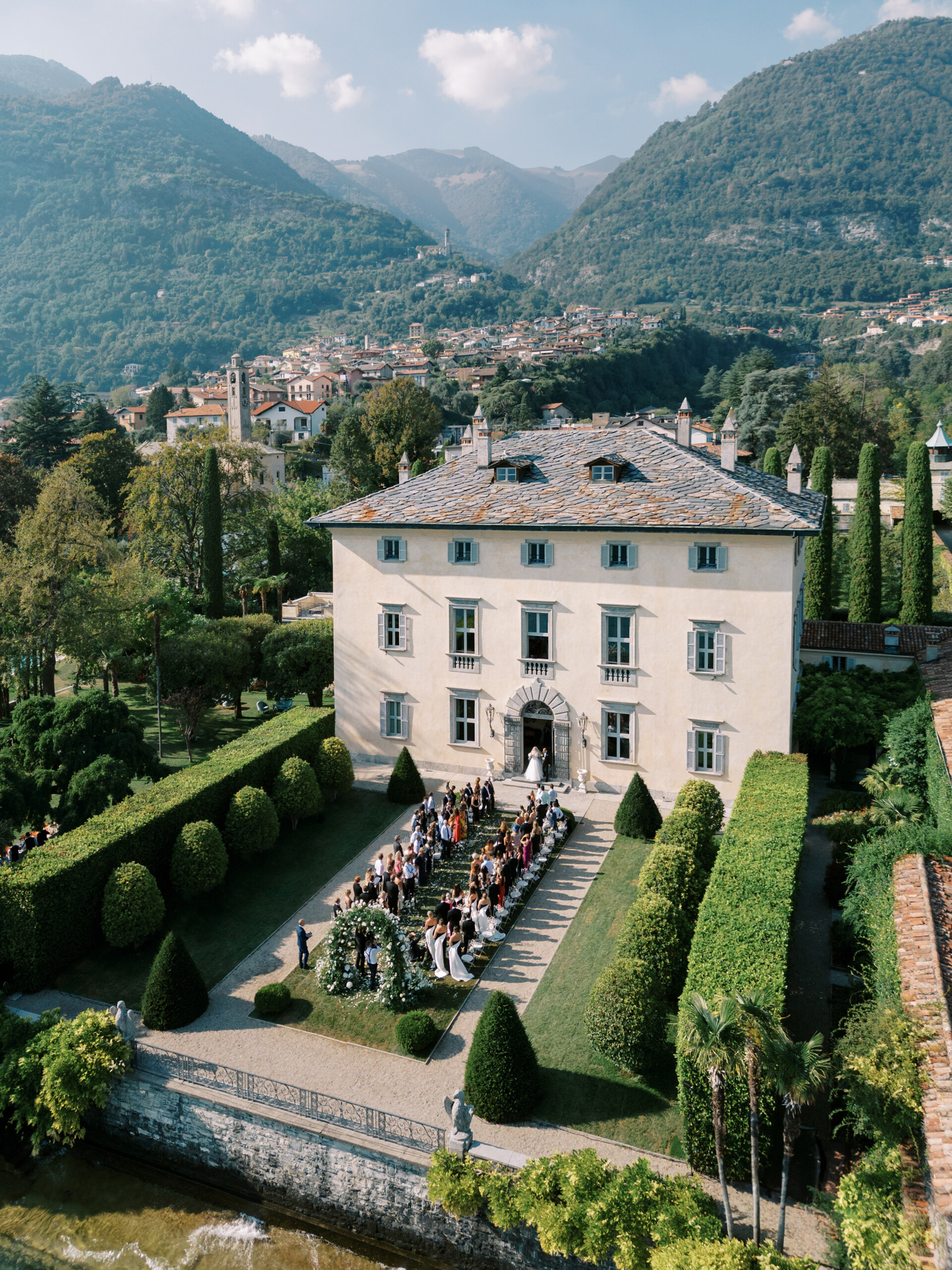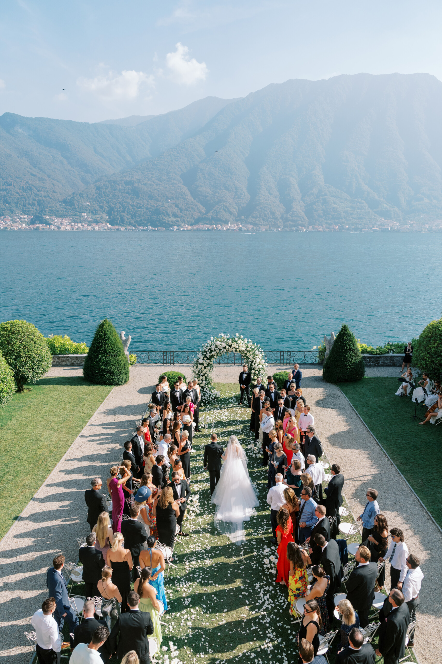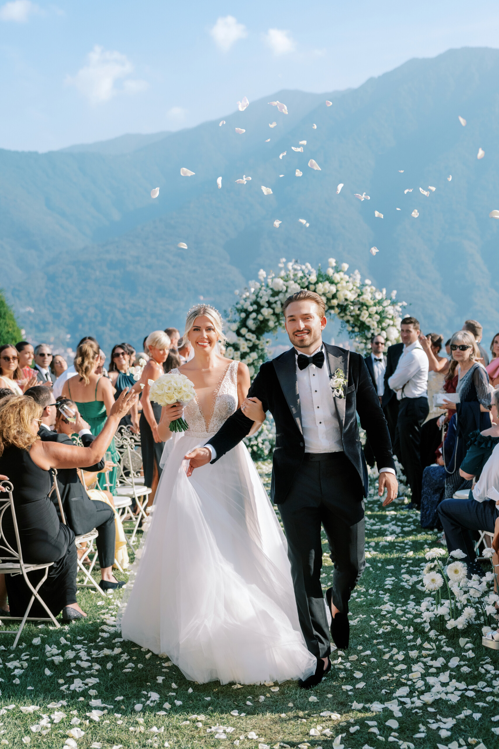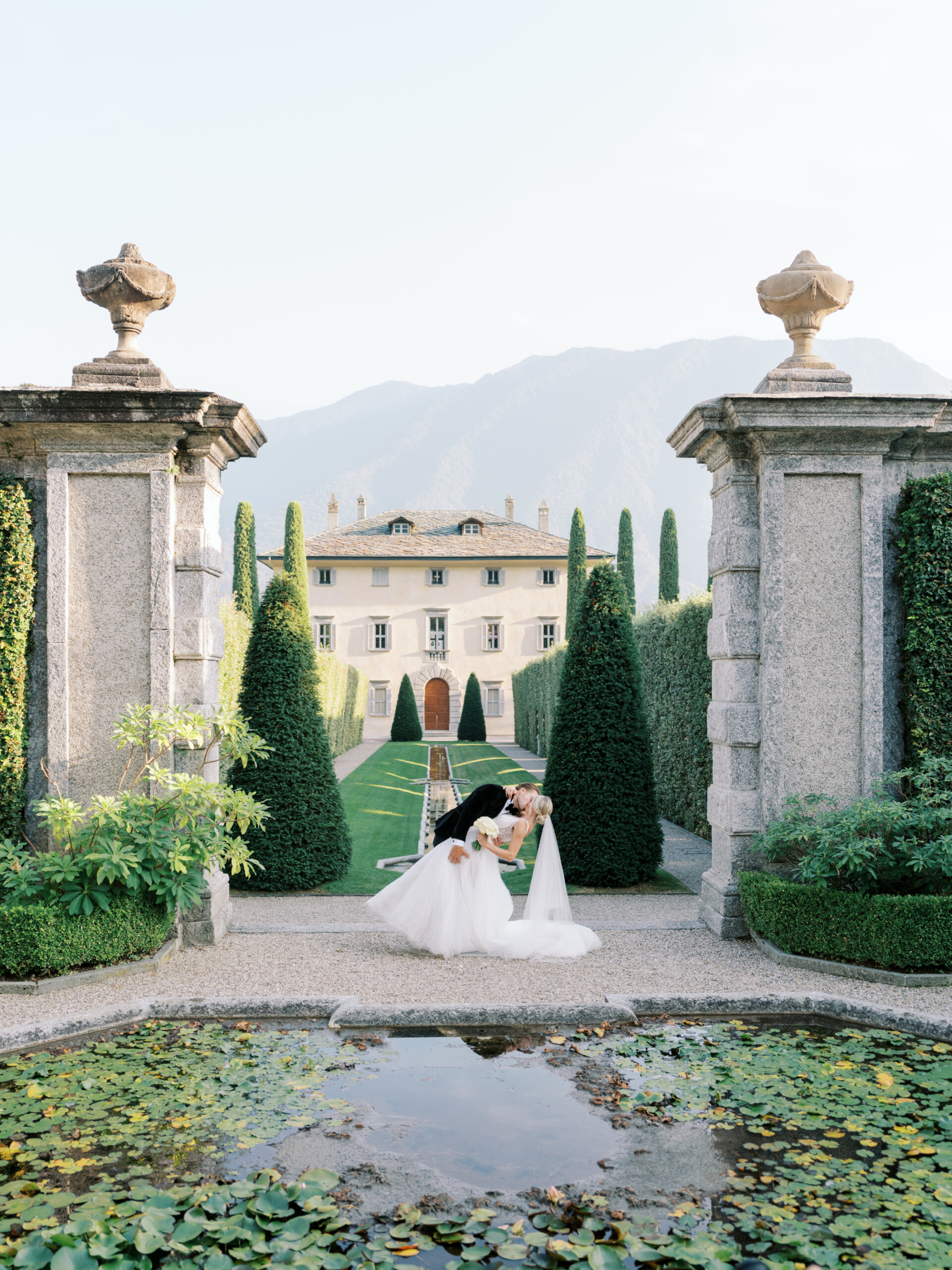 За день до свадьбы жених с друзьями и отцом невесты провели утро в гольф клубе, расположенном в горах озера Комо, невеста с подругами отдыхали в СПА. Велком пати прошла на пляже Лидо в городе Ленно с пиццей, традиционными итальянскими закусками и коктейлем Апероль Шприц. Для свадьбы пара выбрала знаменитую виллу Бальбиано, на которой проходило утро невесты с подружками. Для подготовки жениха и его друзей выбрали Гранд Отель Тремеццо, откуда парни отправились на лодке прямо на церемонию. Зажигателный бэнд из Лондона поднял с мест всех гостей, а известный дуэт саксофониста и диджея продолжили вечеринку до глубокой ночи, на разрезании торта Морган всех поразила своим образом Haute Couture — усыпанное кристаллами короткое платье и сапоги-легинсы из новой коллекции Berta.