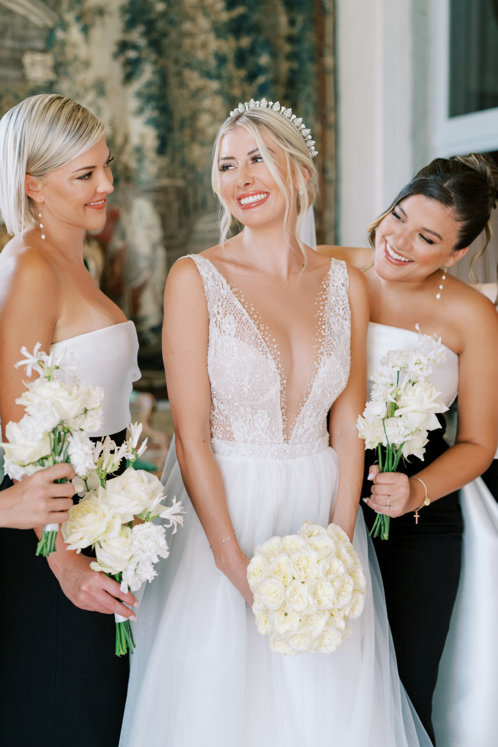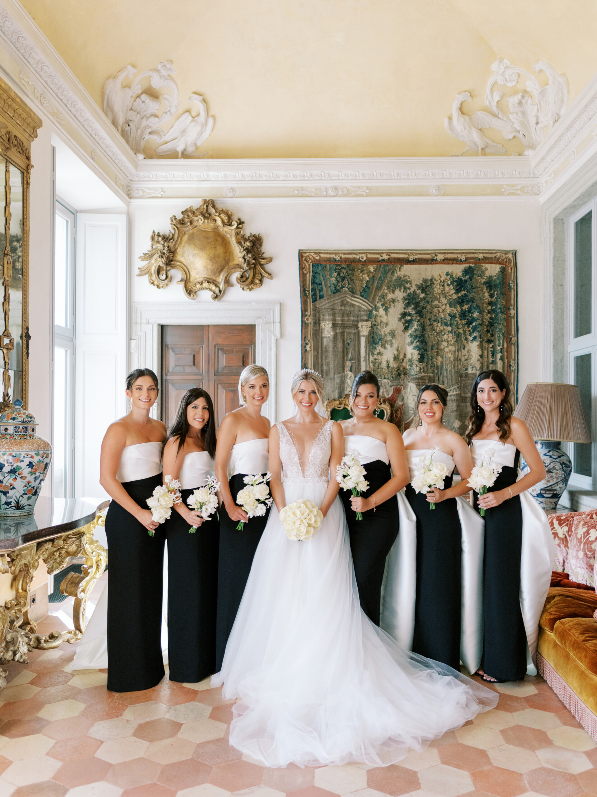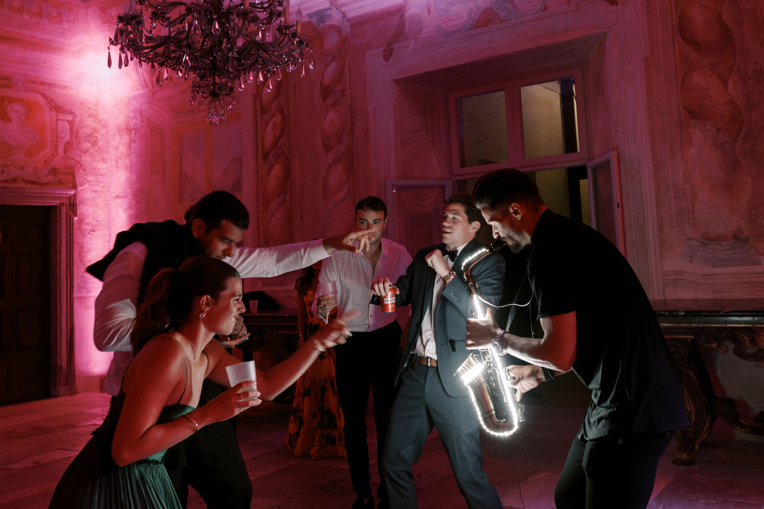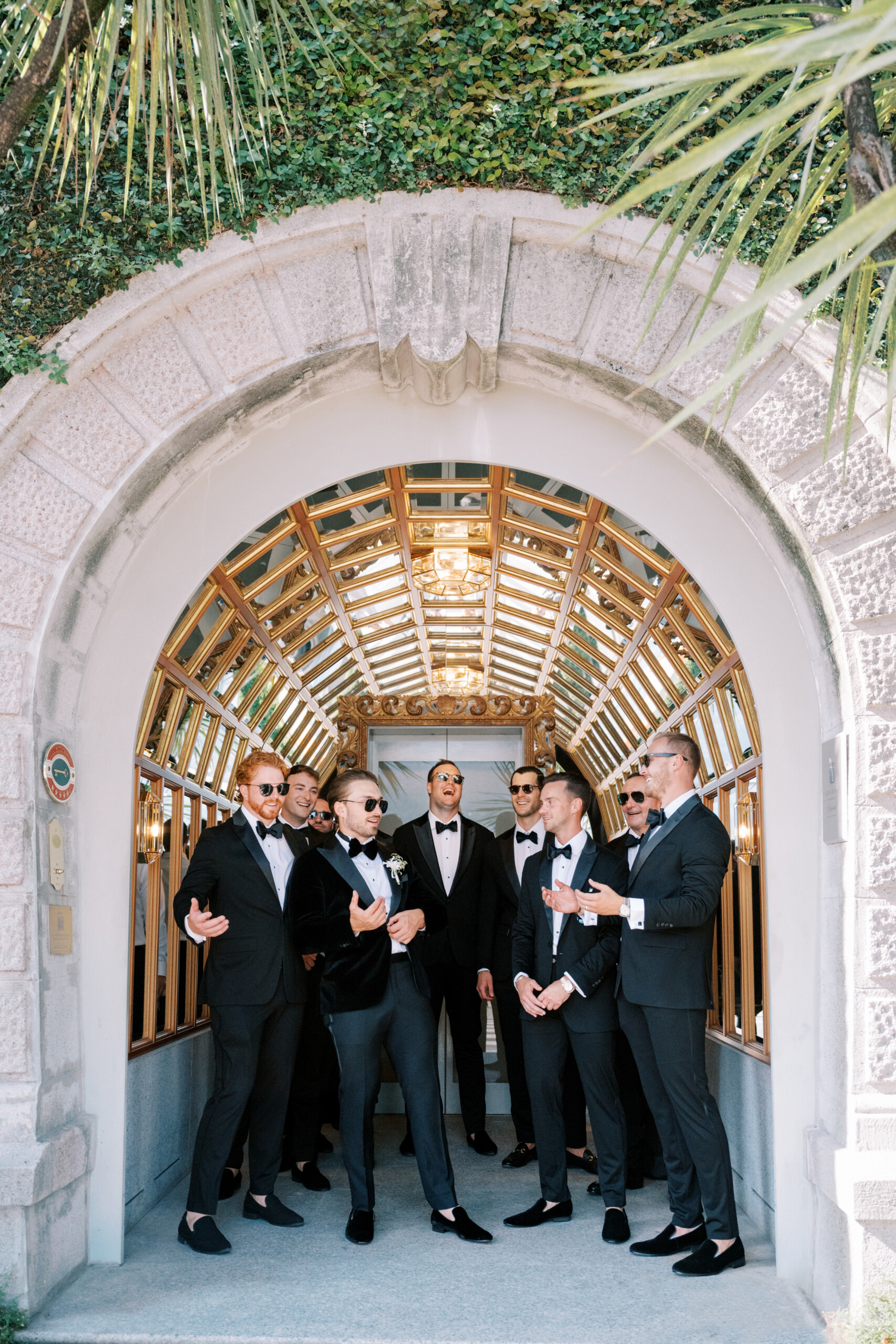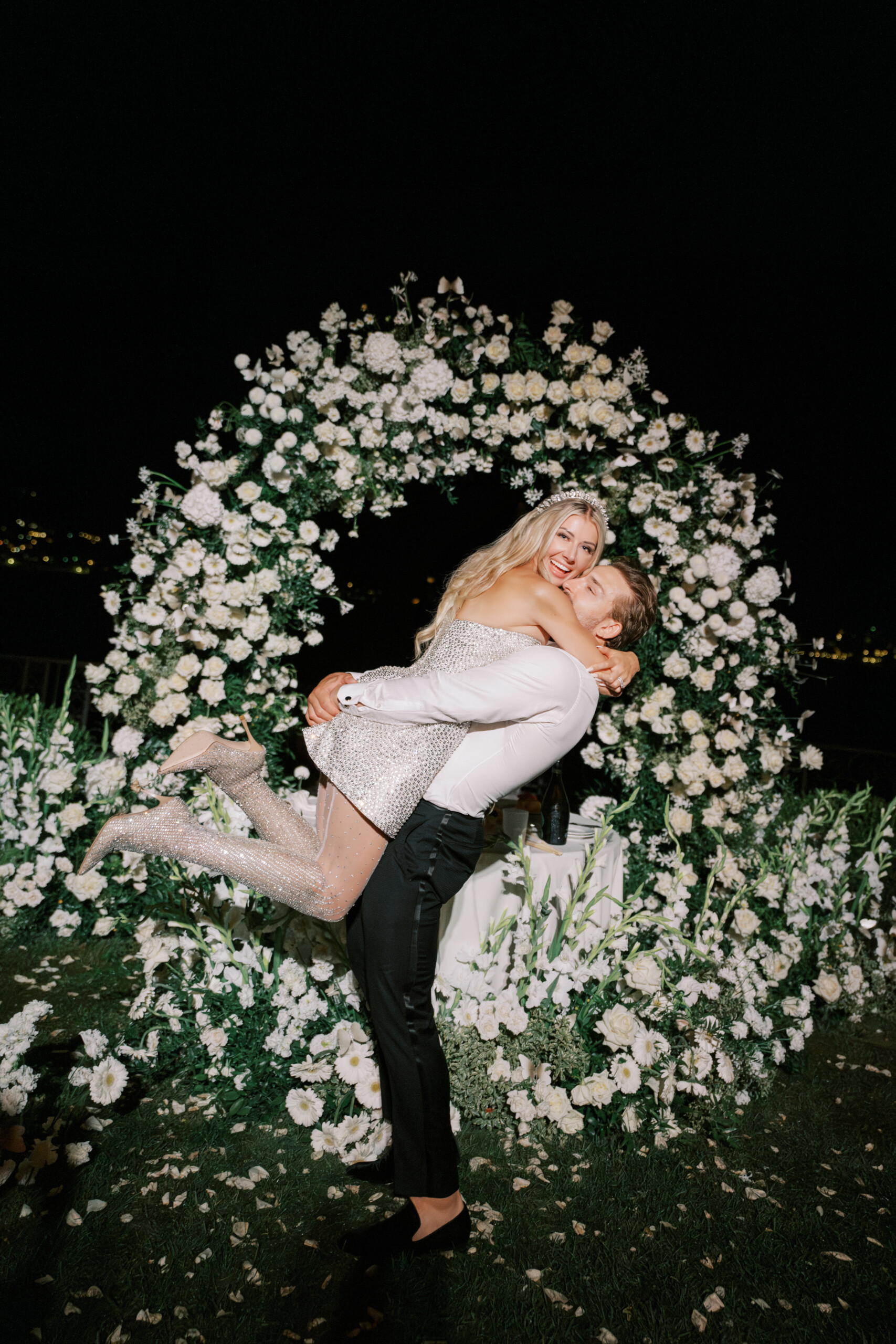 За день до свадьбы жених с друзьями и отцом невесты провели утро в гольф клубе, расположенном в горах озера Комо, невеста с подругами отдыхали в СПА. Велком пати прошла на пляже Лидо в городе Ленно с пиццей, традиционными итальянскими закусками и коктейлем Апероль Шприц. Для свадьбы пара выбрала знаменитую виллу Бальбиано, на которой проходило утро невесты с подружками. Для подготовки жениха и его друзей выбрали Гранд Отель Тремеццо, откуда парни отправились на лодке прямо на церемонию. Зажигателный бэнд из Лондона поднял с мест всех гостей, а известный дуэт саксофониста и диджея продолжили вечеринку до глубокой ночи, на разрезании торта Морган всех поразила своим образом Haute Couture — усыпанное кристаллами короткое платье и сапоги-легинсы из новой коллекции Berta.