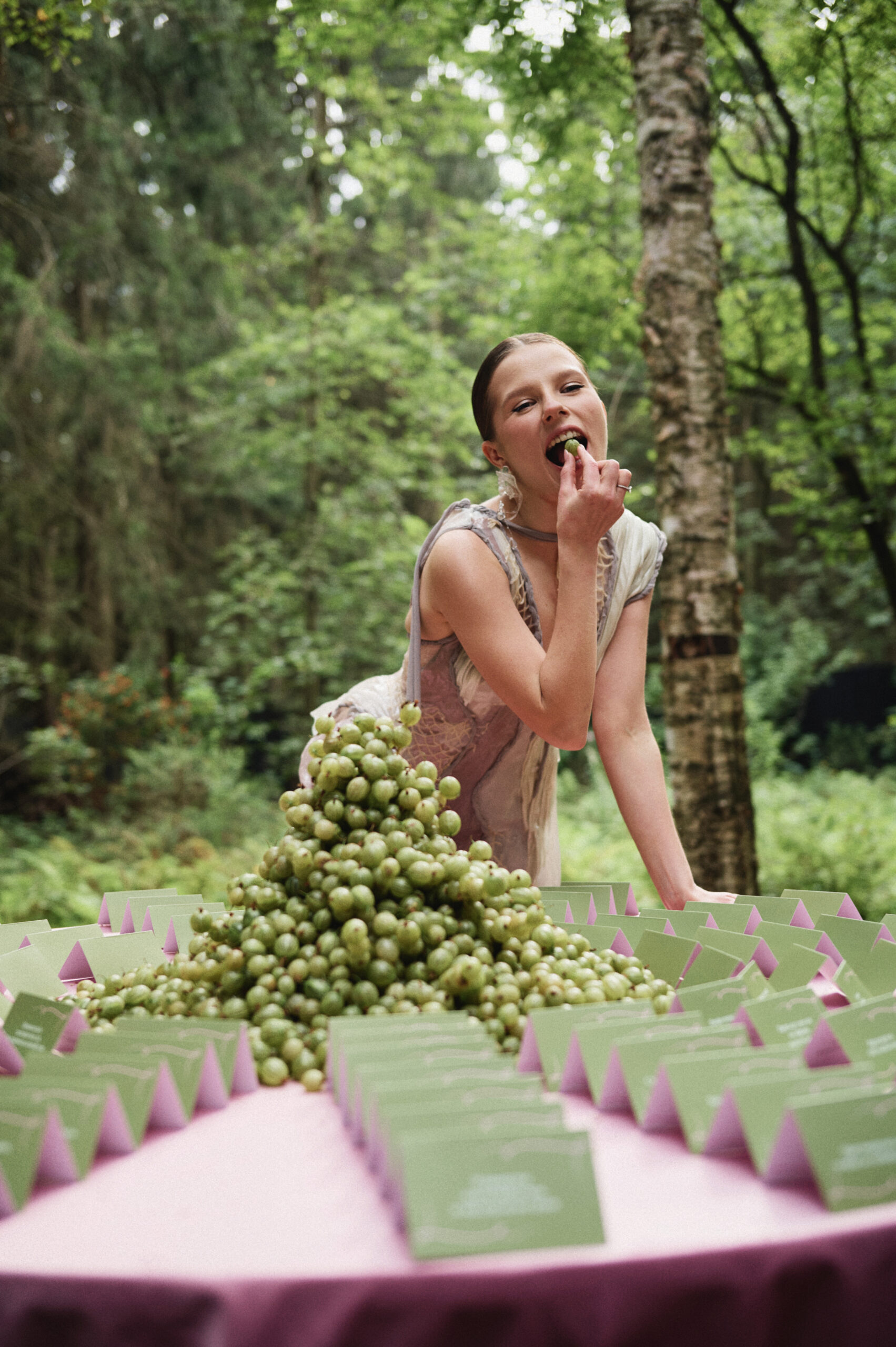 Со вторым платьем не было конкретных задач. В соцсетях случайно наткнулась на аккаунт с тканями, залитыми силиконом, которые дают мокрый эффект. Даже не представляла, что такая одежда бывает, сразу заказала.