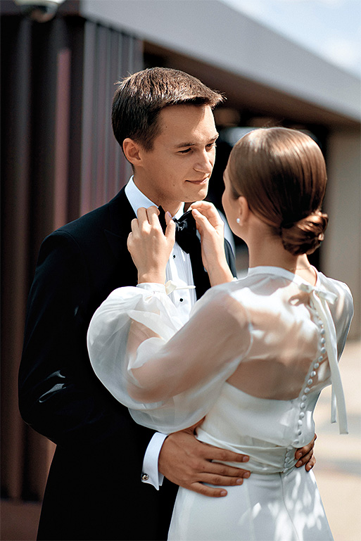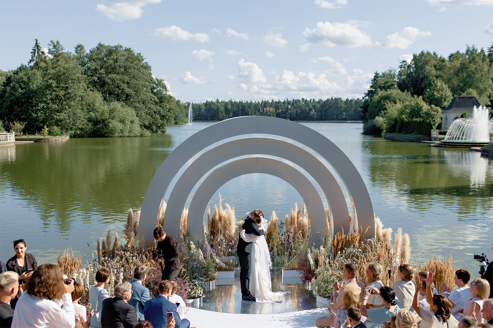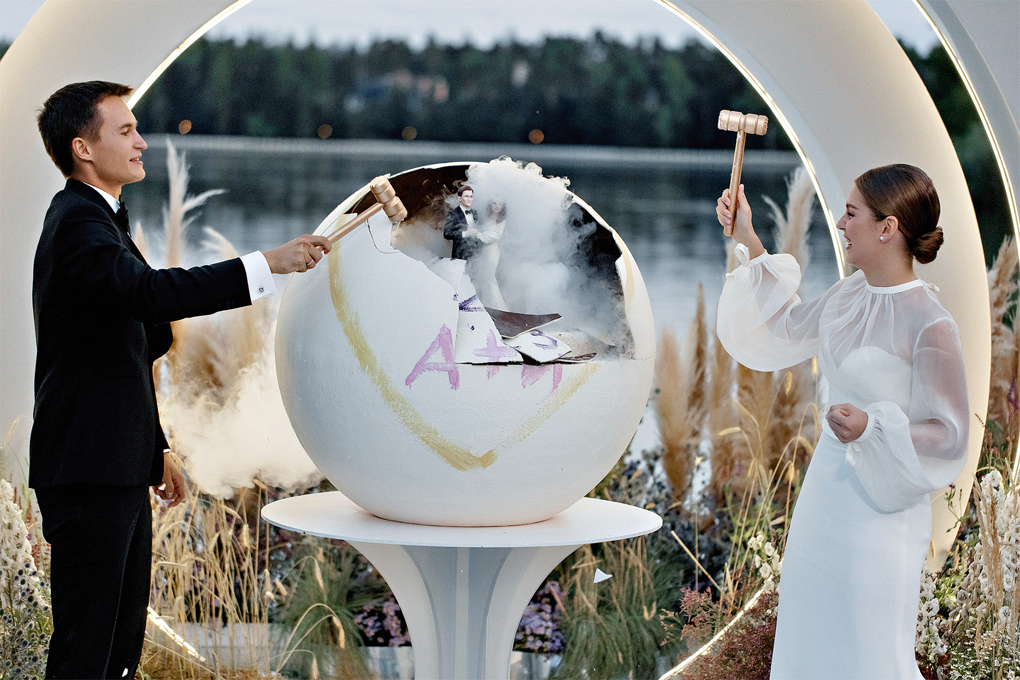 Праздник завершился на высокой и красивой ноте: в кульминационный момент на площадке появился изящный белоснежный торт, символизирующий чистоту и гармонию в отношениях молодоженов. А потом Илья и Анна начали его раскрашивать — так начался их общий путь, и каждая использованная ими краска олицетворяла новые яркие впечатления и радостные моменты, которые они разделят в будущем.