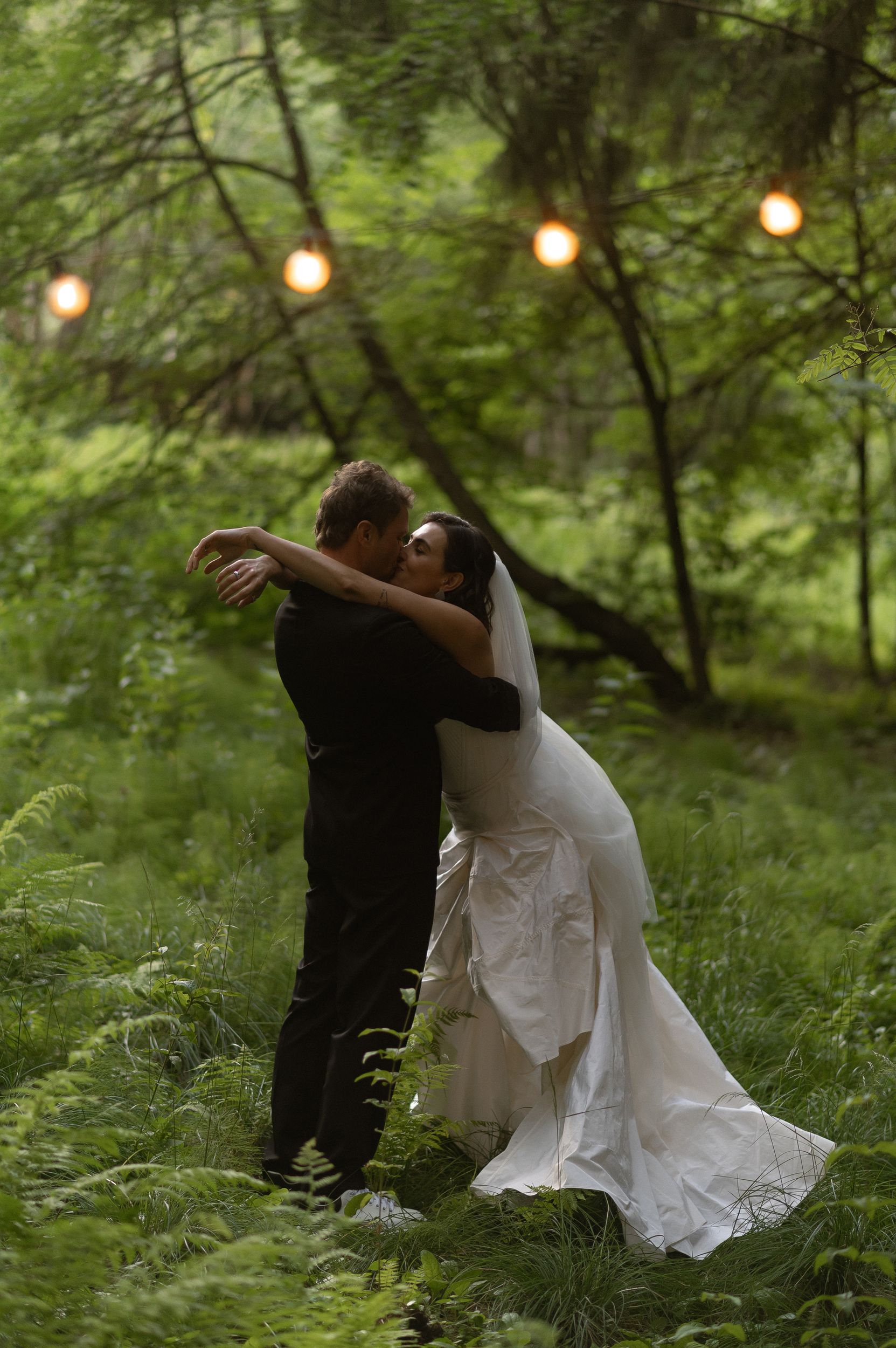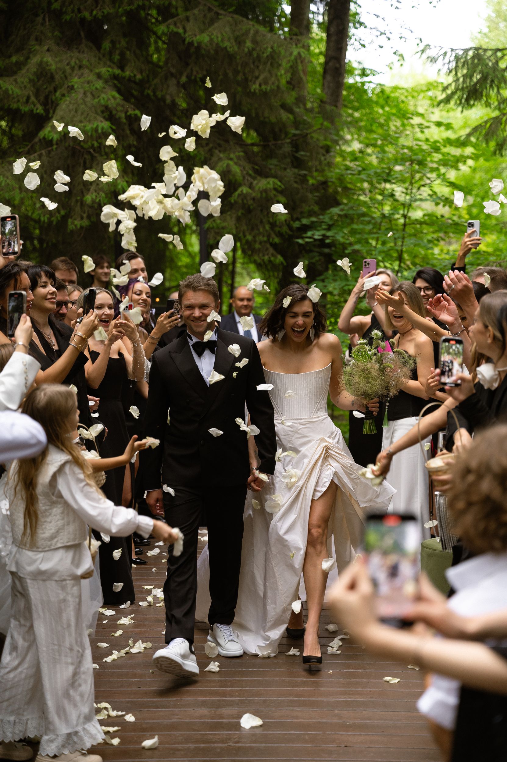 София и Виталий не представляют свою жизнь без путешествий — они постоянно в движении и едва ли есть несколько дней, когда они никуда не улетают. Особенно им нравится природа — живая, немного дикая и нетронутая. Поэтому основной задачей стало совмещение лесного пейзажа площадки и декора. Так, чтобы все смотрелось естественно, без ярких акцентов и лишних деталей. Использовали натуральные природные материалы: рогоз, мох, скумпия, сетария, амарант и гортензия.