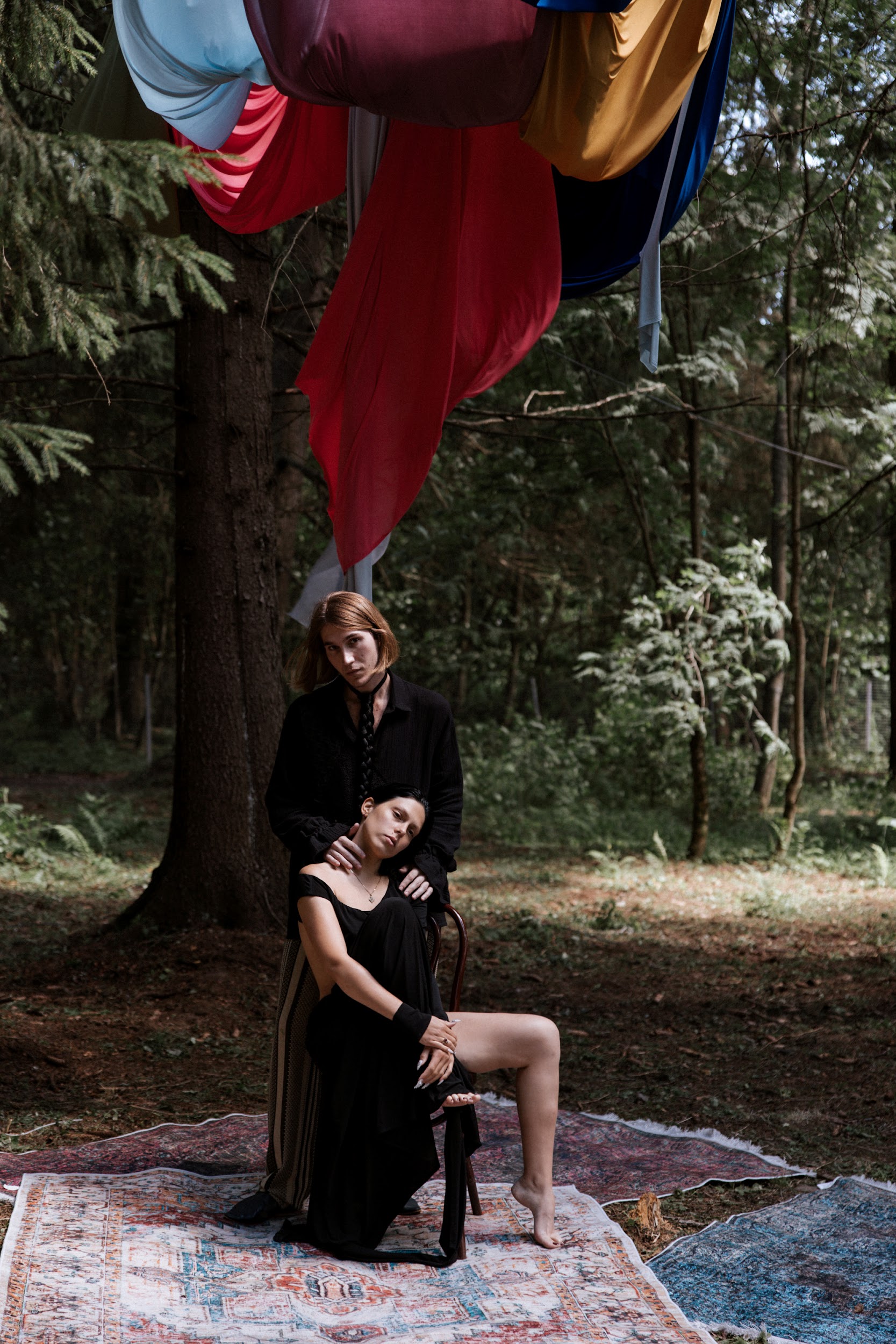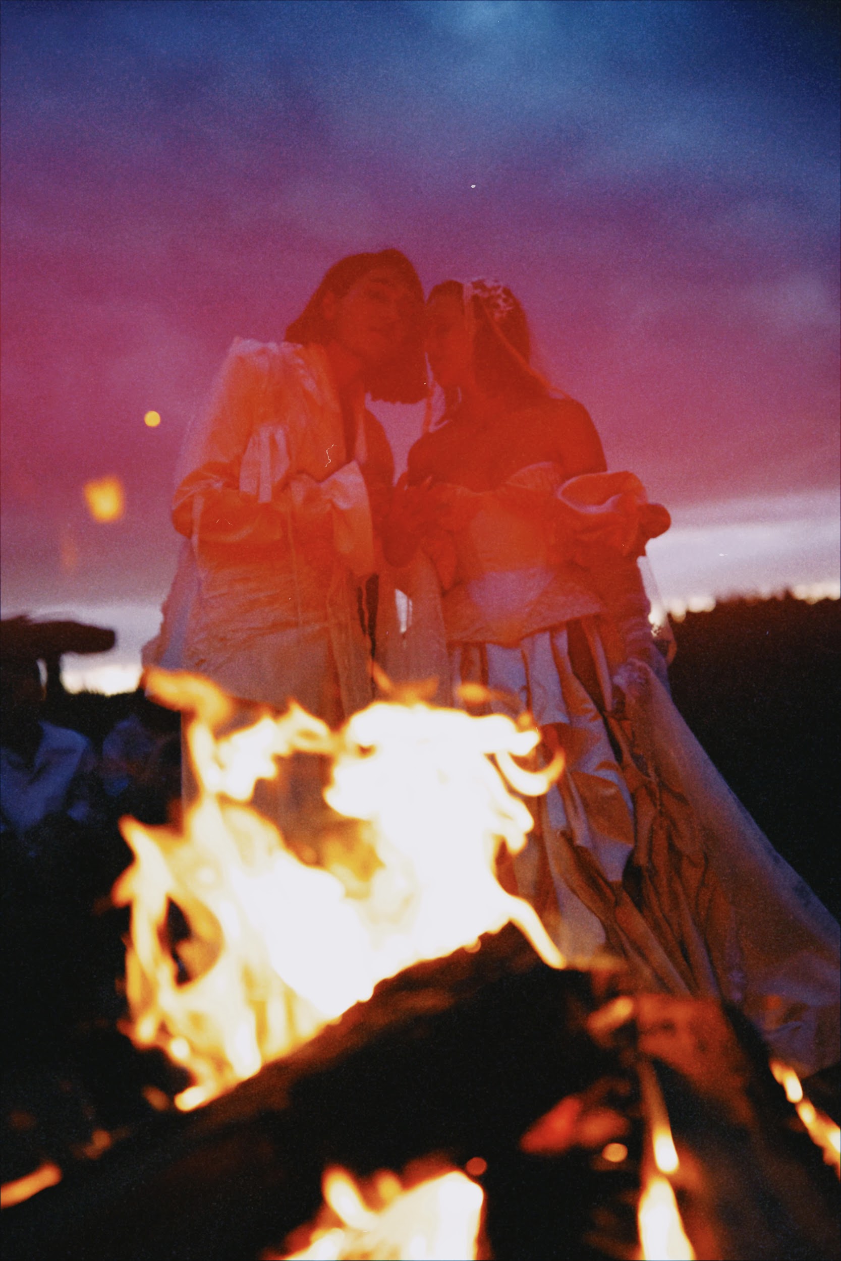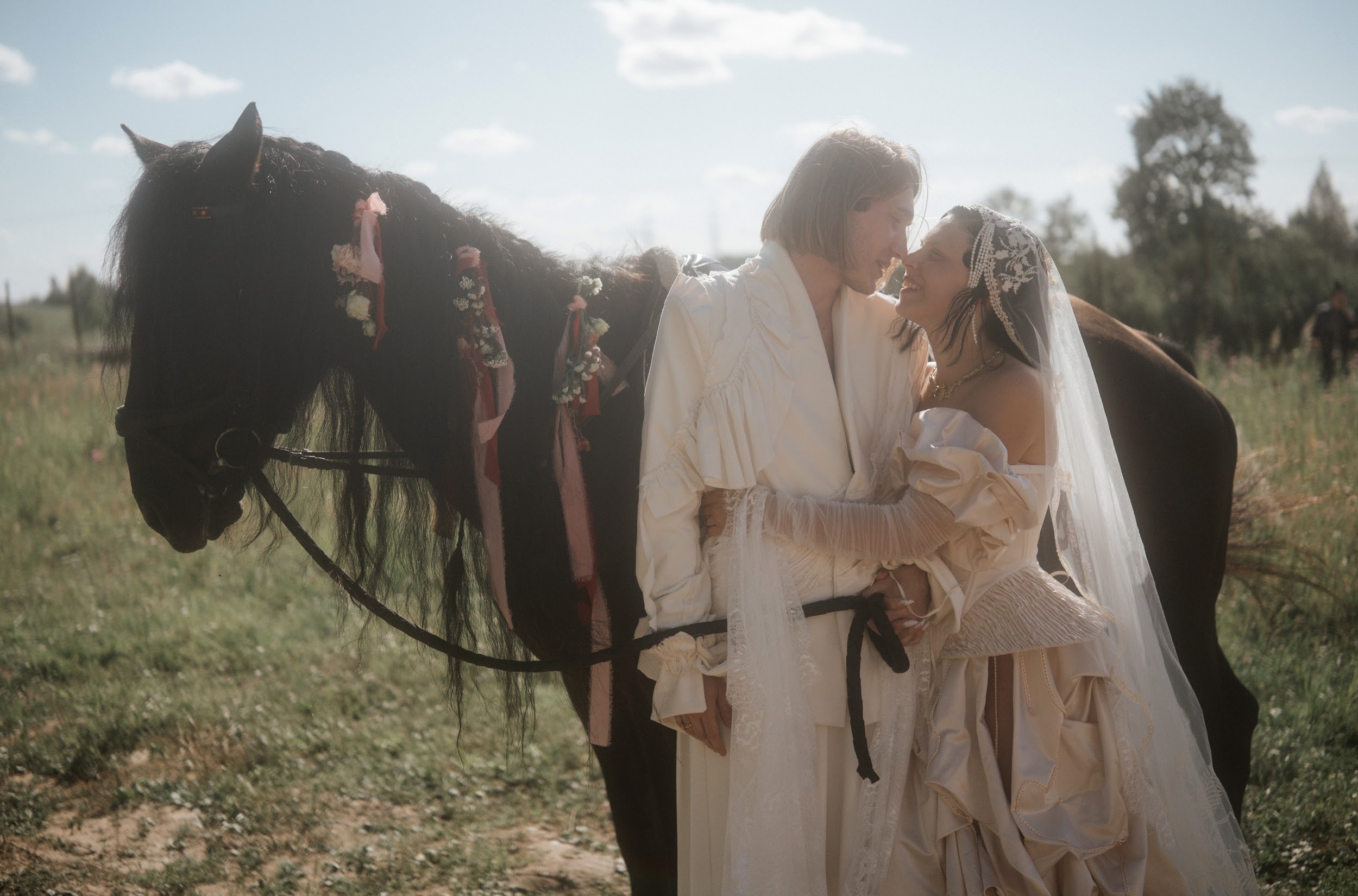Эрнест и Лена просты и открыты, любят русскую культуру, природу, старинные традиции и мистические обряды. Вместе с этим их вдохновляет мода: они изучали дизайн в Италии, обожают винтаж и блошиные рынки, а невеста создала собственный бренд одежды.