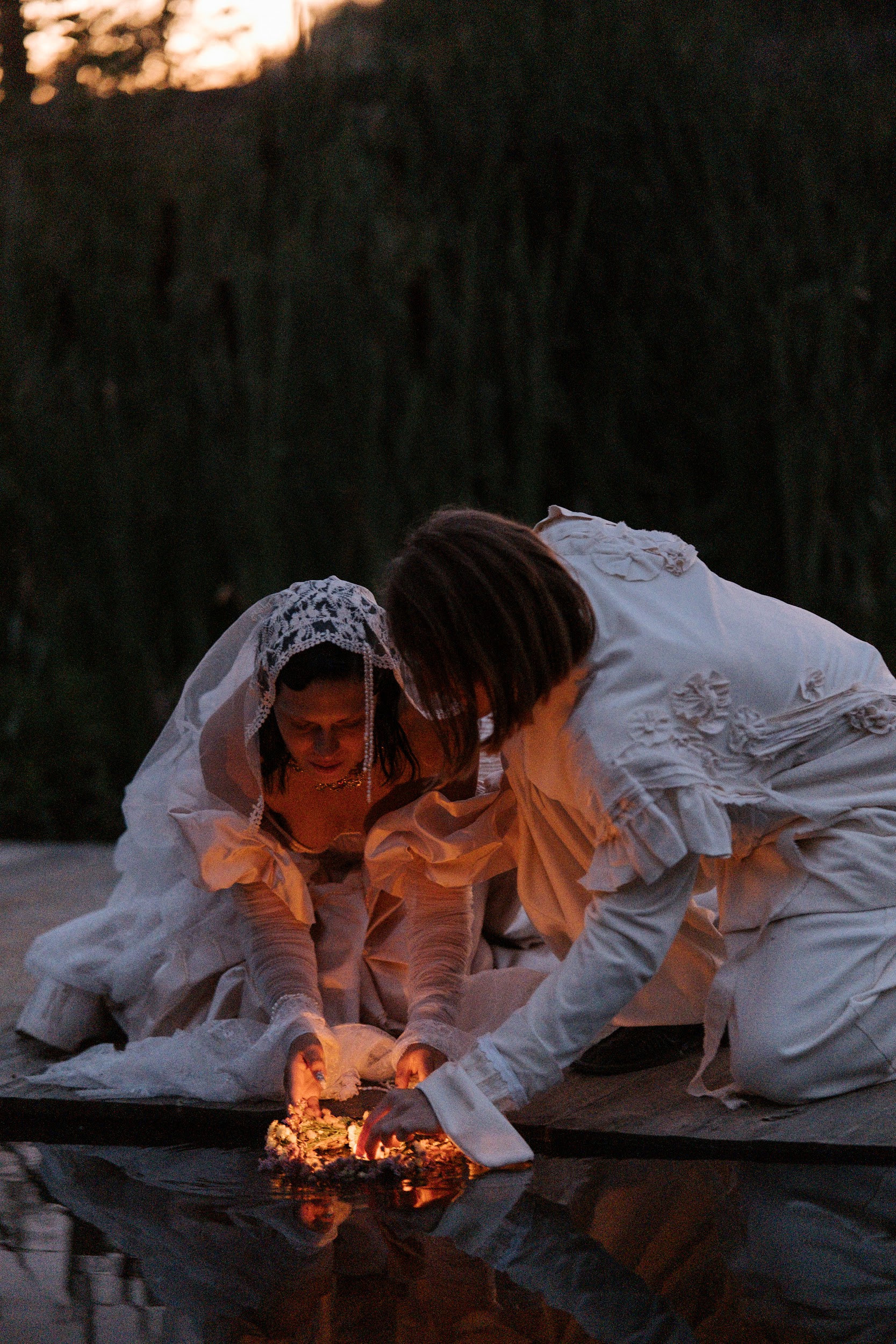 После заката в зоне церемонии пели русско-народные песни в современной интерпретации, водили хороводы и, конечно же, пускали венки по воде.