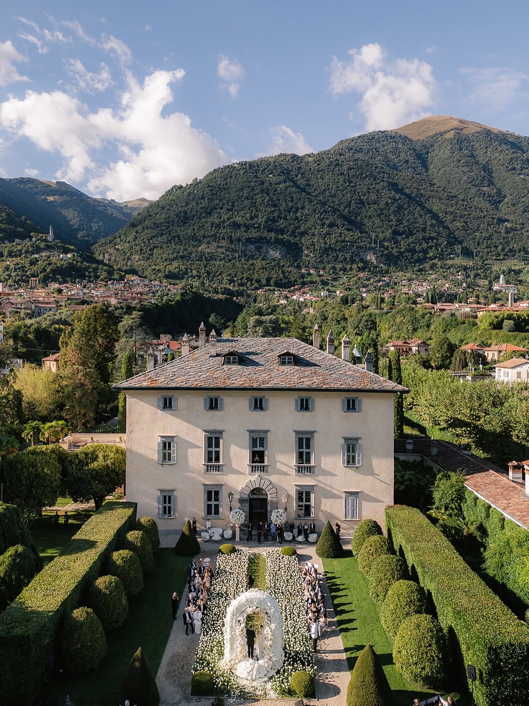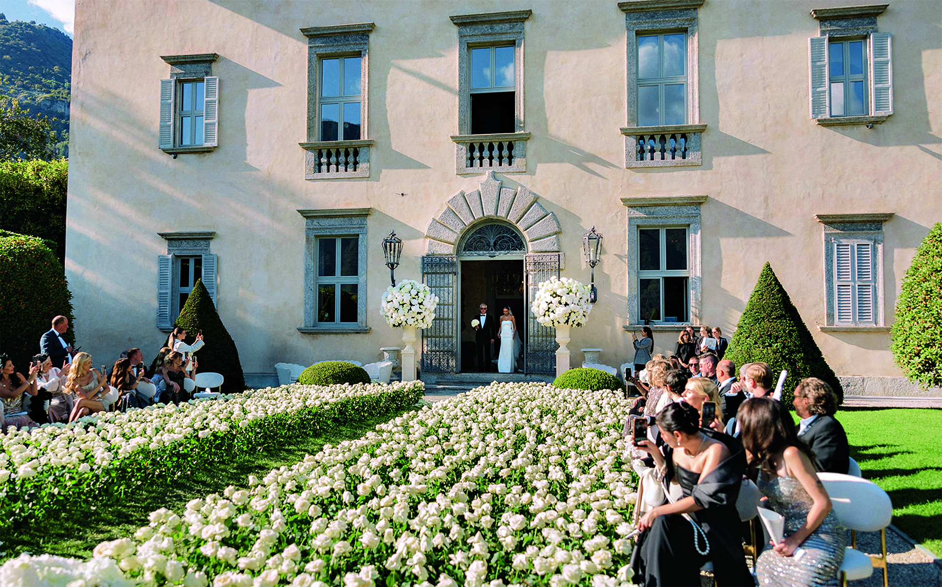 «Погода на озере Комо знаменита своей непредсказуемостью. И в этот раз дождь шел всю ночь, но утром в день свадьбы, как подарок судьбы, выглянуло солнце», — говорят представители знакового итальянского агентства.