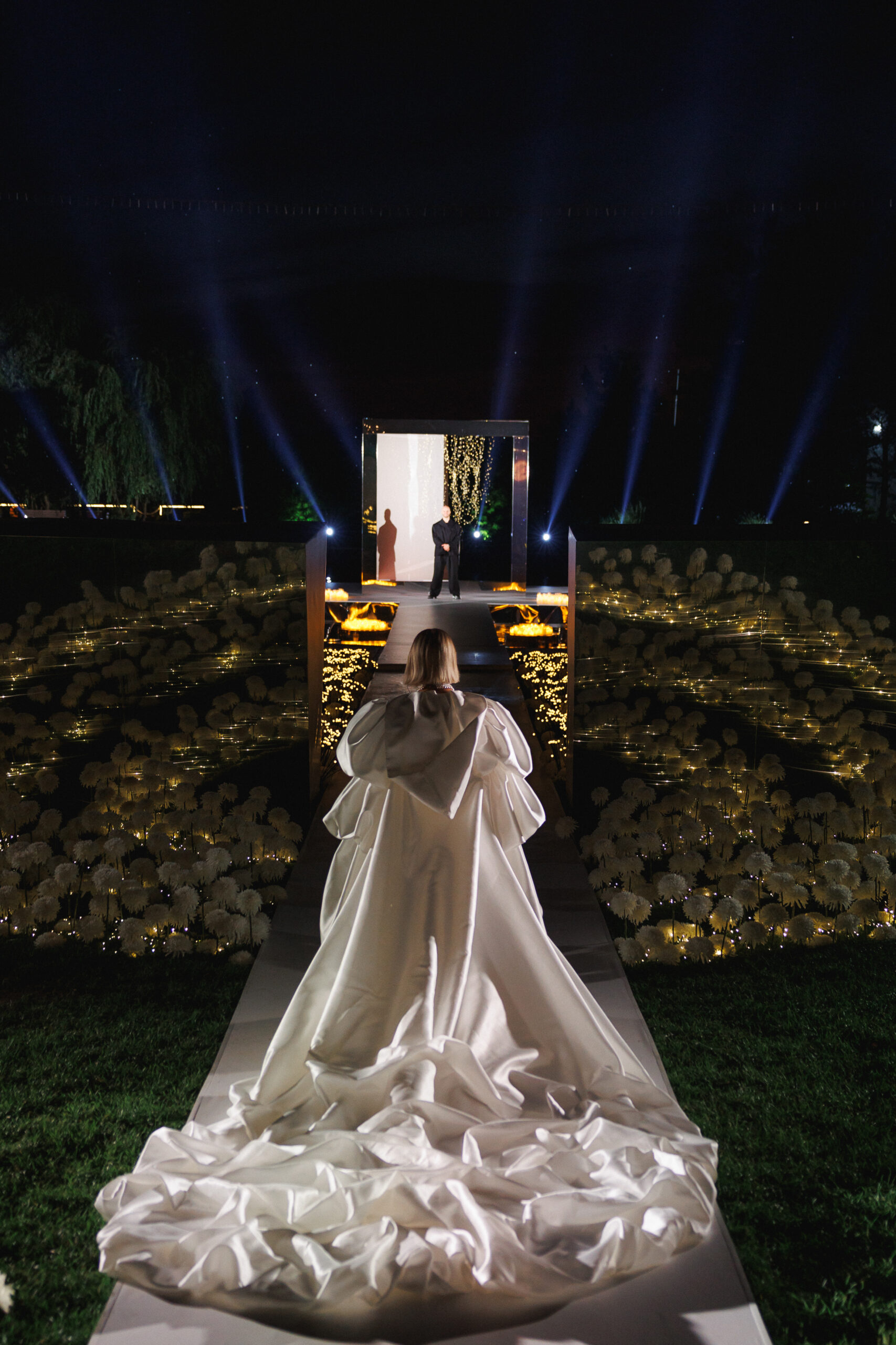 Ночная церемония была захватывающей. В кромешной тишине гости надевали наушники и погружались в музыкальную медитацию, в которой звучал голос ведущего — Руслана Исмаилова, а позже появлялся голос невесты, говорящей о значимости гостей и, конечно, о любви (момент, о котором жених даже не догадывался).