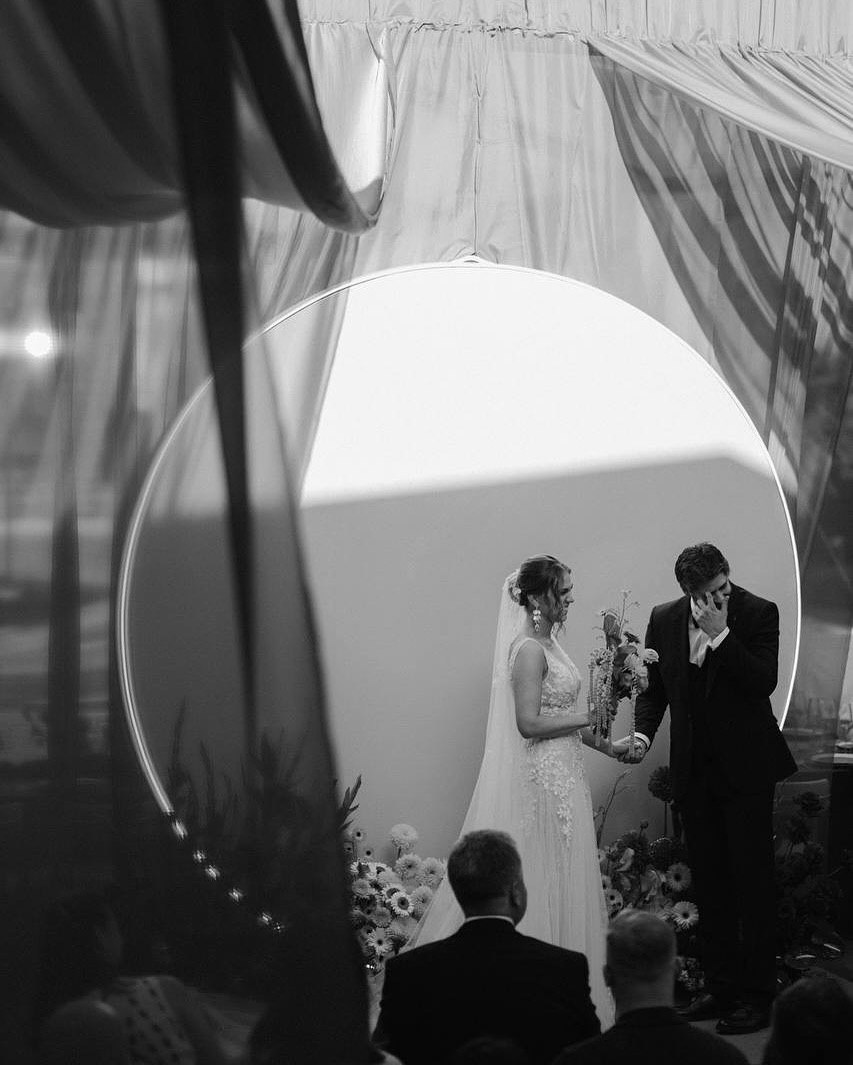 Пространство раскрылось как единая симфония света: с одной стороны — торжественная церемония, где рождалась новая история любви под лучами рассветного солнца, с другой — праздничная зона для ужина, наполненная теплом и радостью объединения семей. Два пространства слились в гармоничное целое, где каждый луч солнца подчеркивал — мы вместе, мы одна семья. Теплые оттенки рассвета встречаются с мягкими лучами софитов, тени танцуют в ритме сердец, а детали создают ощущение семейности. Звуковая дорожка, словно сердцебиение, ведет гостей через все моменты этого особенного дня, где даже время дышит тише.