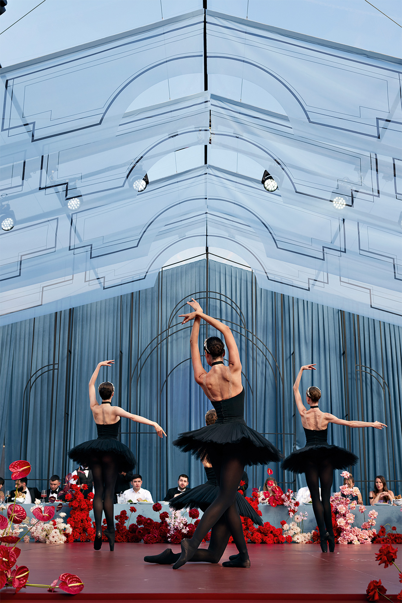 С самого начала гости оказались в мире, где всё не то, чем кажется: большое становится маленьким, а маленькое — огромным, закрытые наглухо двери внезапно открываются, а красная дорожка превращается в наряд певицы.